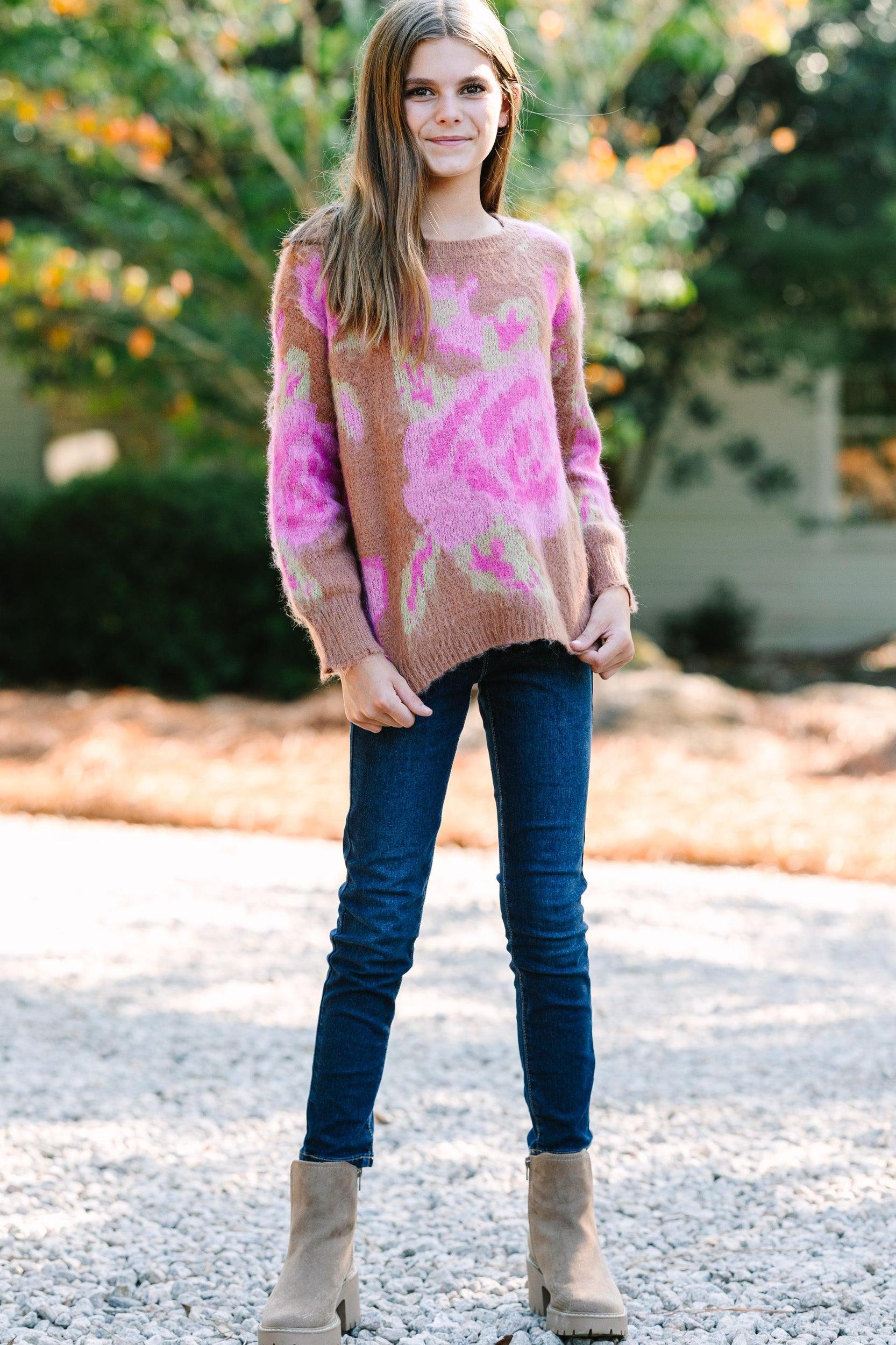 Girls: Talk That Talk Camel Brown Floral Sweater Girls