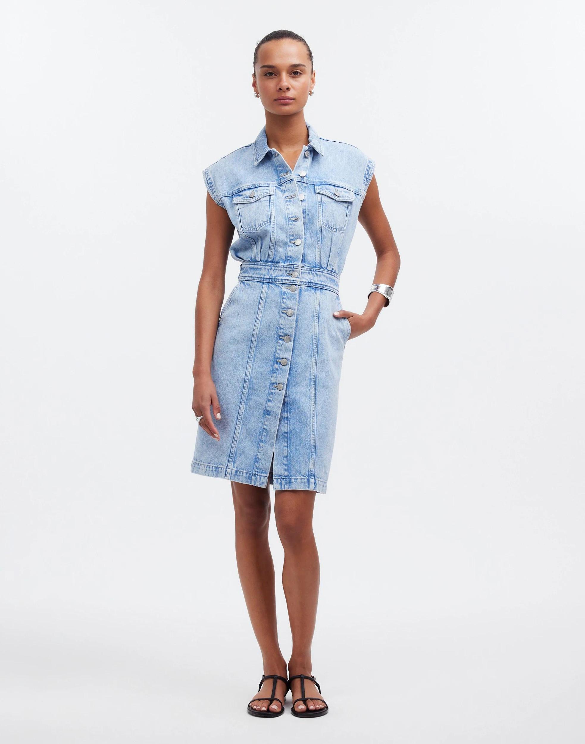 Denim Cap-Sleeve Shirtdress in Aquino Wash