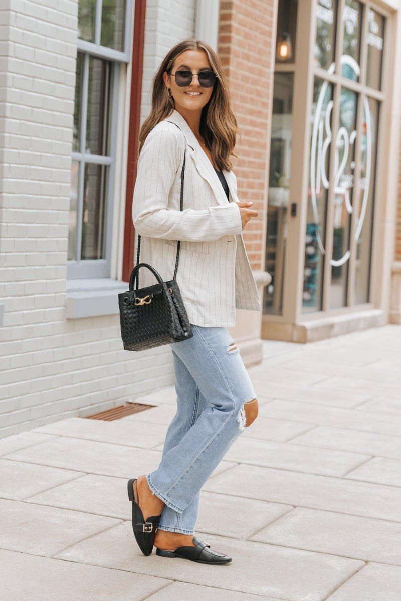 Miho Jeans - High Waisted Recycled Cotton Distressed Straight Leg Denim Jeans in Mid Blue Wash