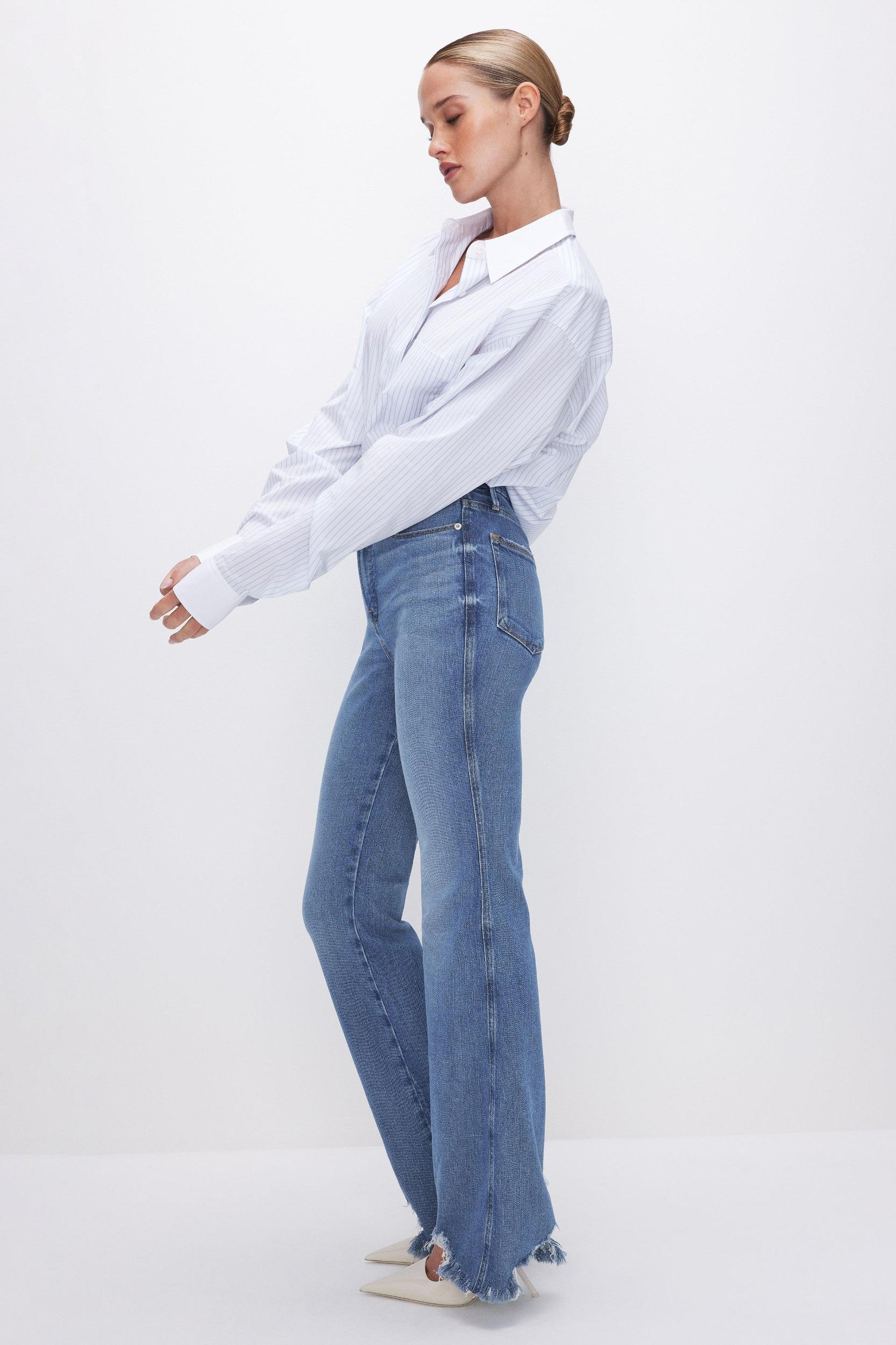 Slim Fit Button-Up Shirt for Tall Women in Light Blue Stripe Female