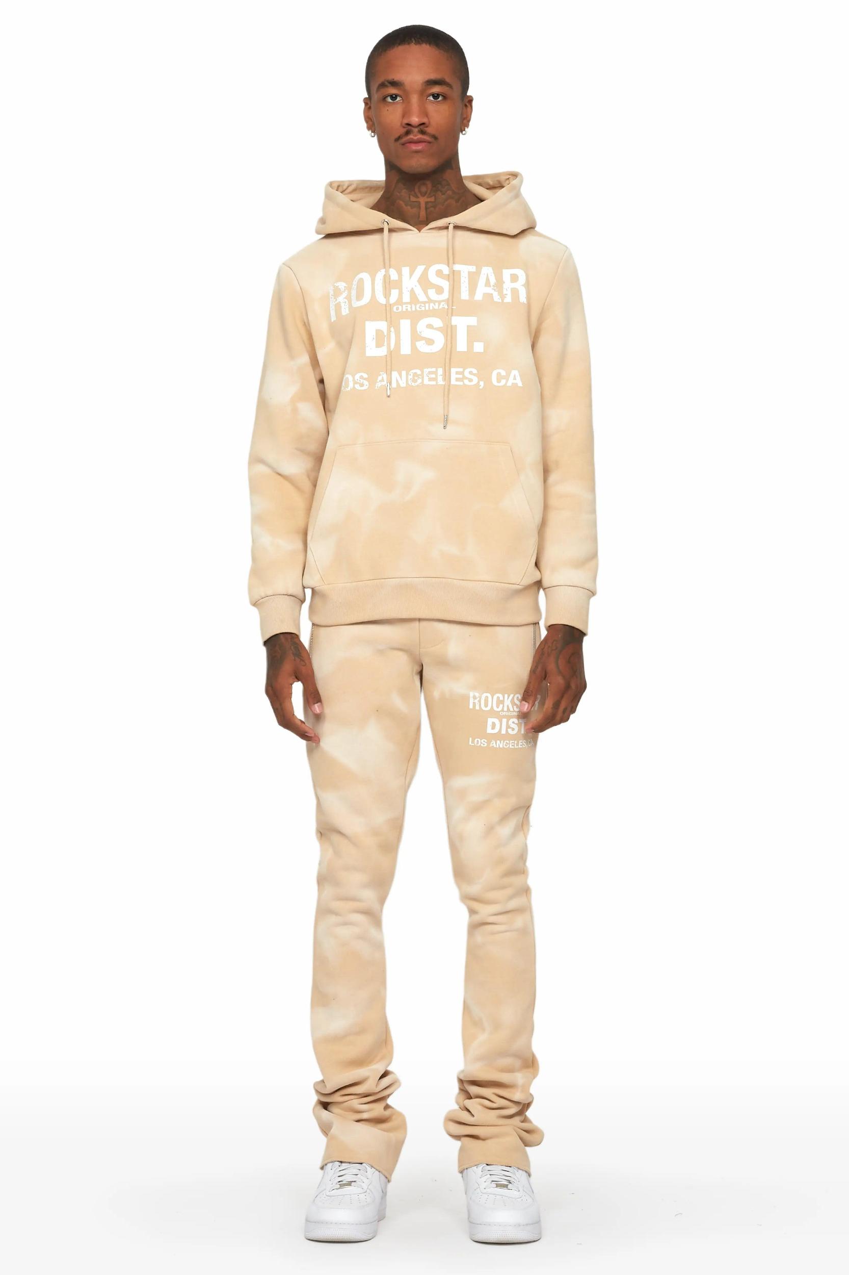 Raffer Beige/White Hoodie/Super Stacked Flare Pant Set Male