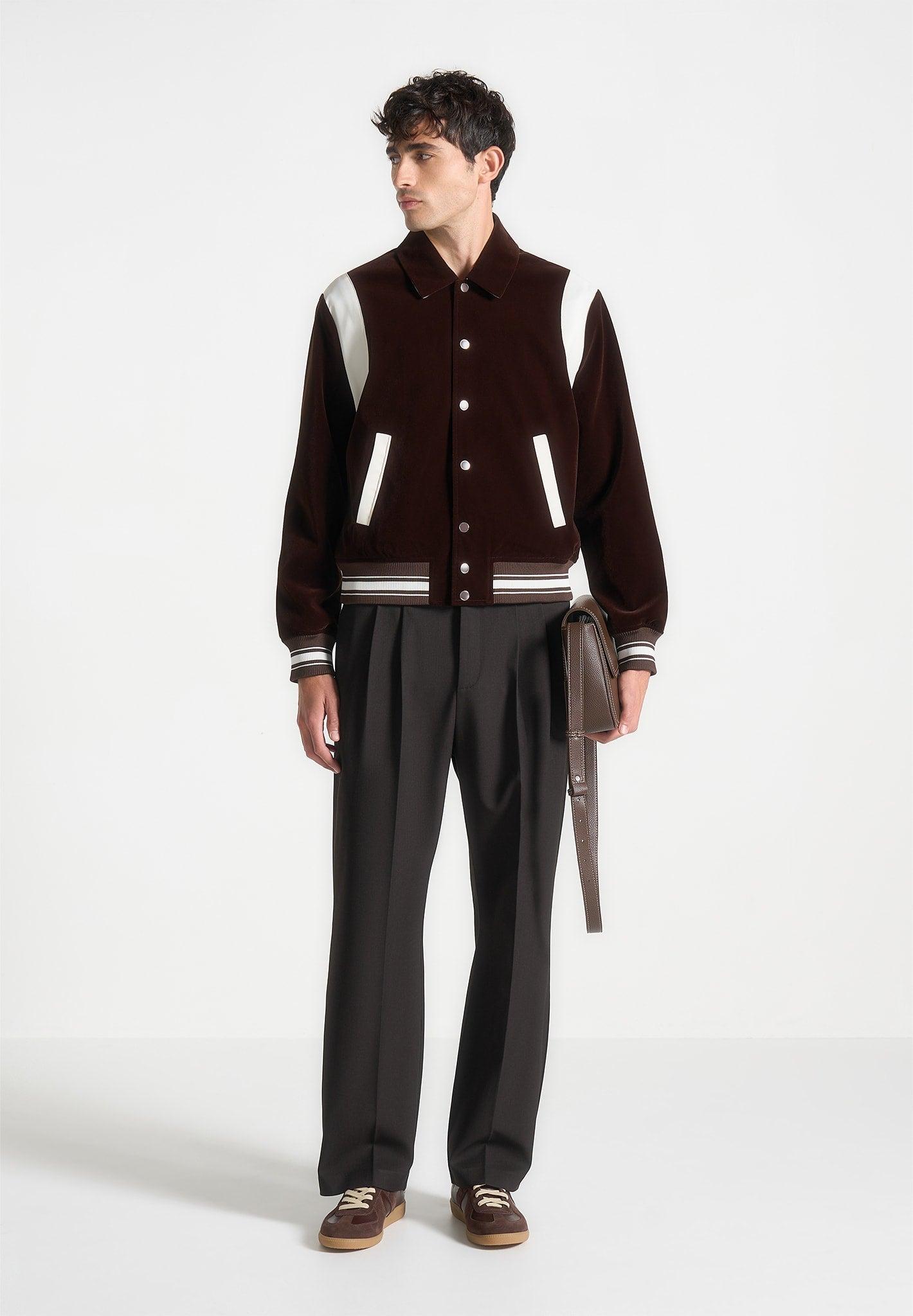 Nico - Velvet & Satin Varsity Jacket - Brown Male