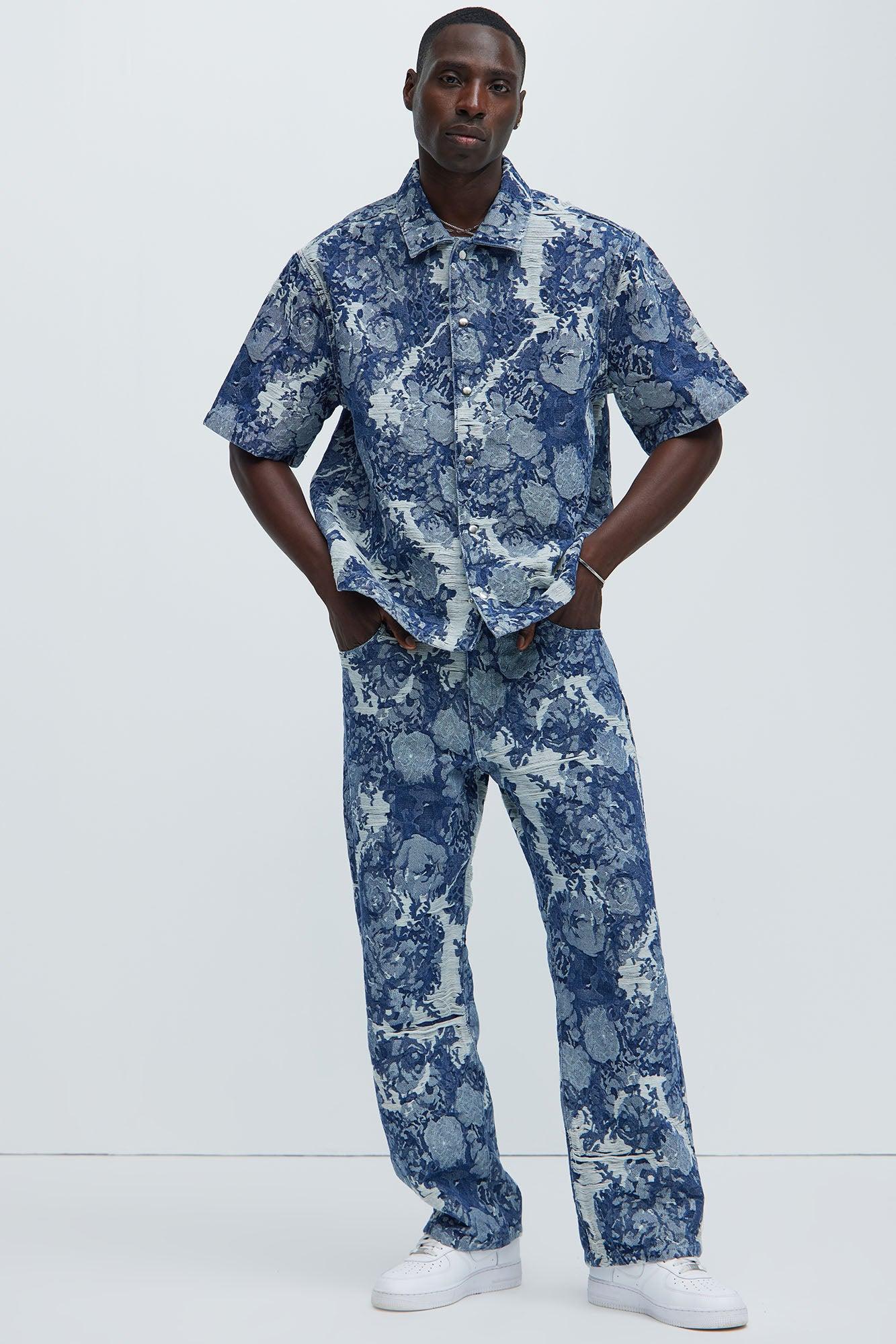 V631 Baggy Frayed Denim - Blue