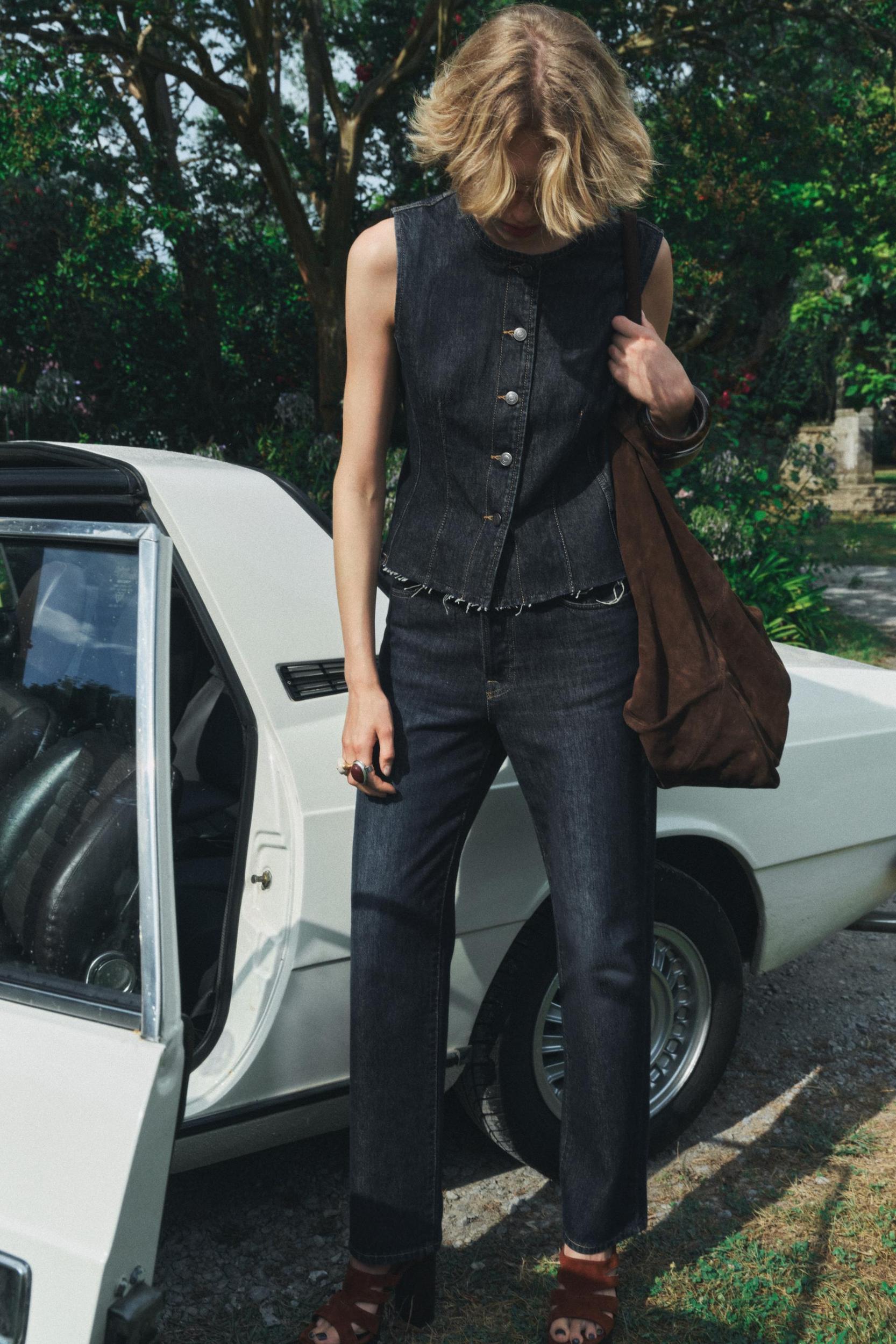 Sent To London Denim Vest Top in Black