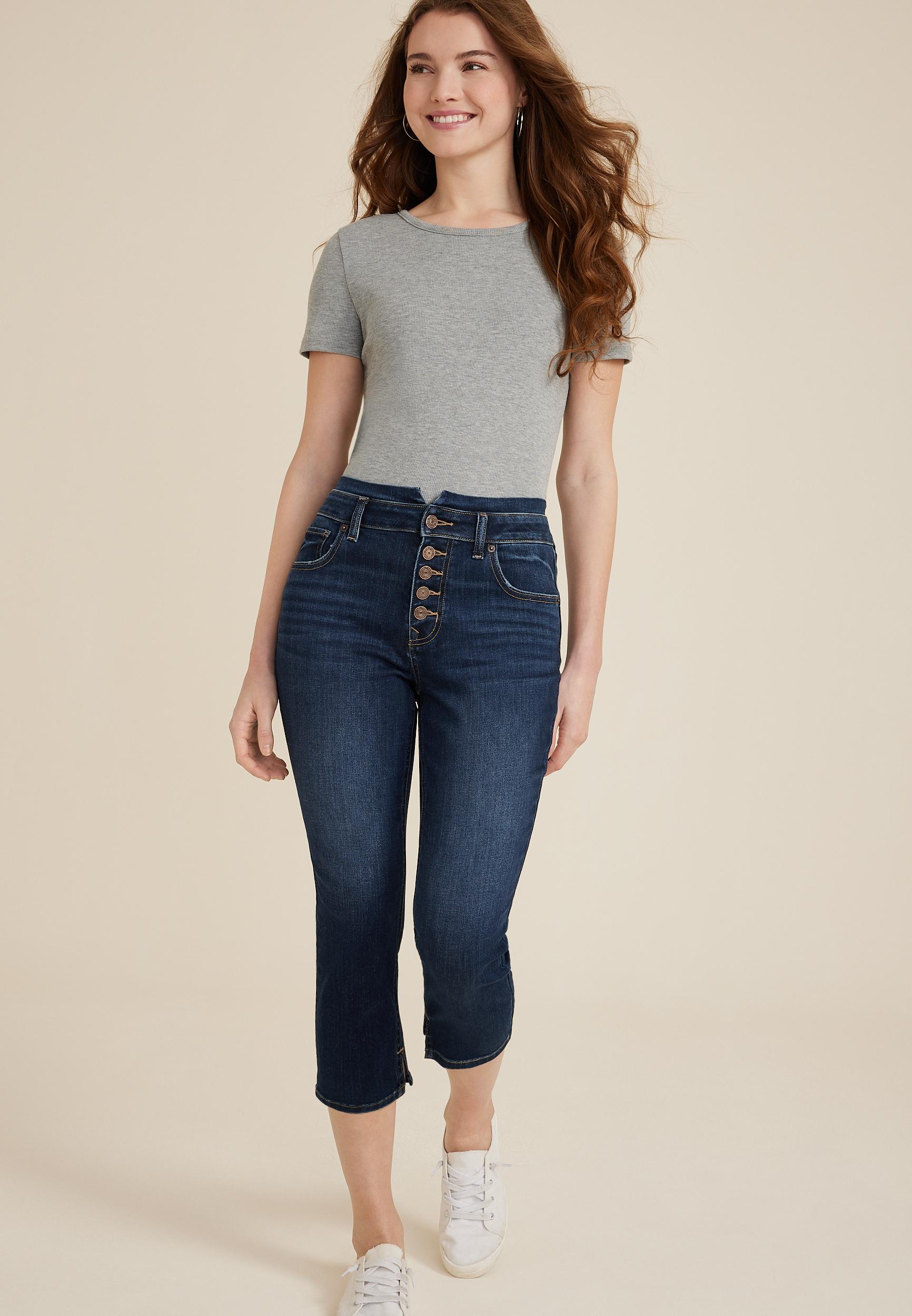 Short Sleeve Crew Neck Ribbed T-Shirt for Tall Women in Black Female