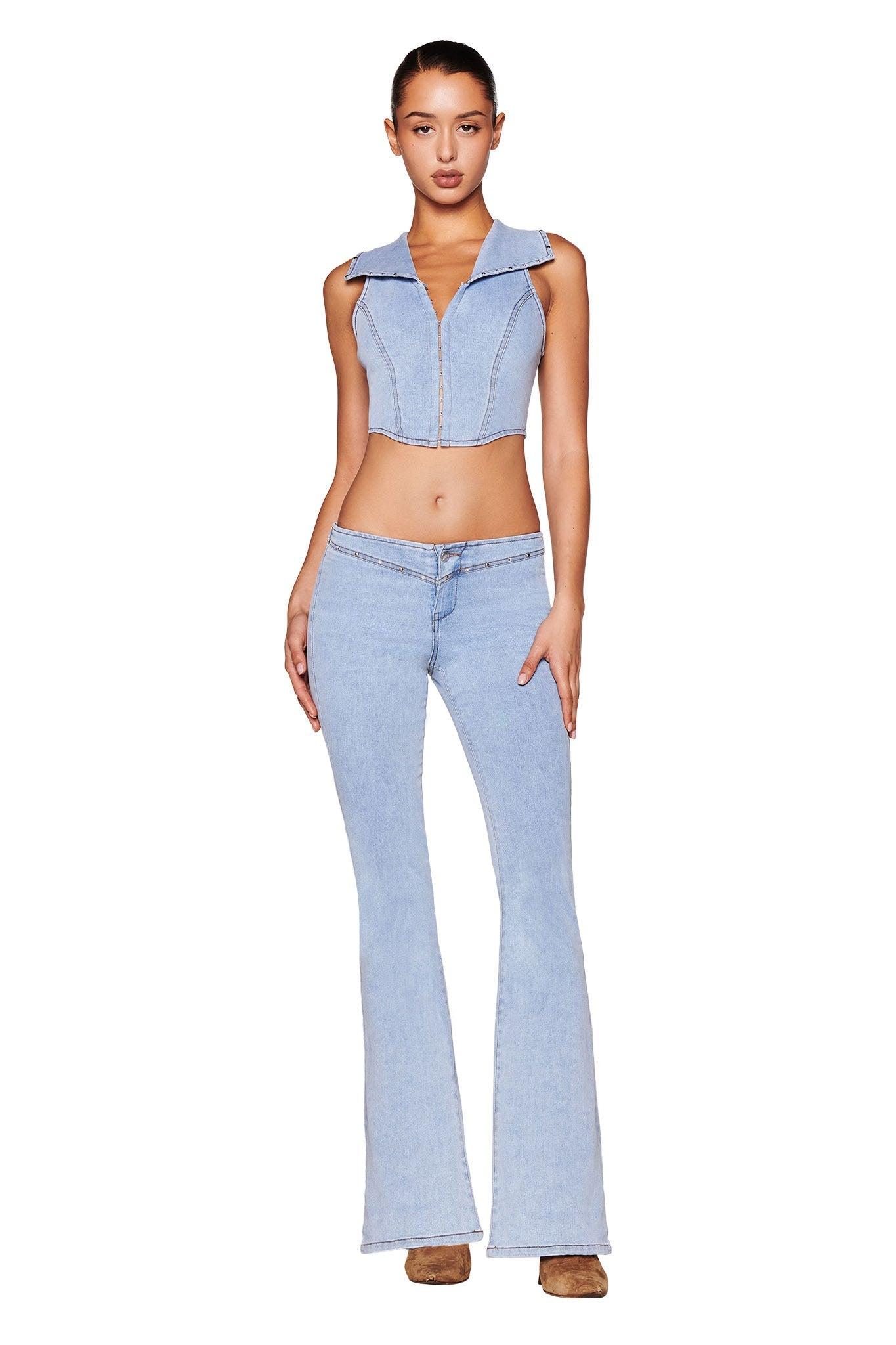 FULL TILT Seamless Lace Trim Womens Tank Top - LIGHT BLUE