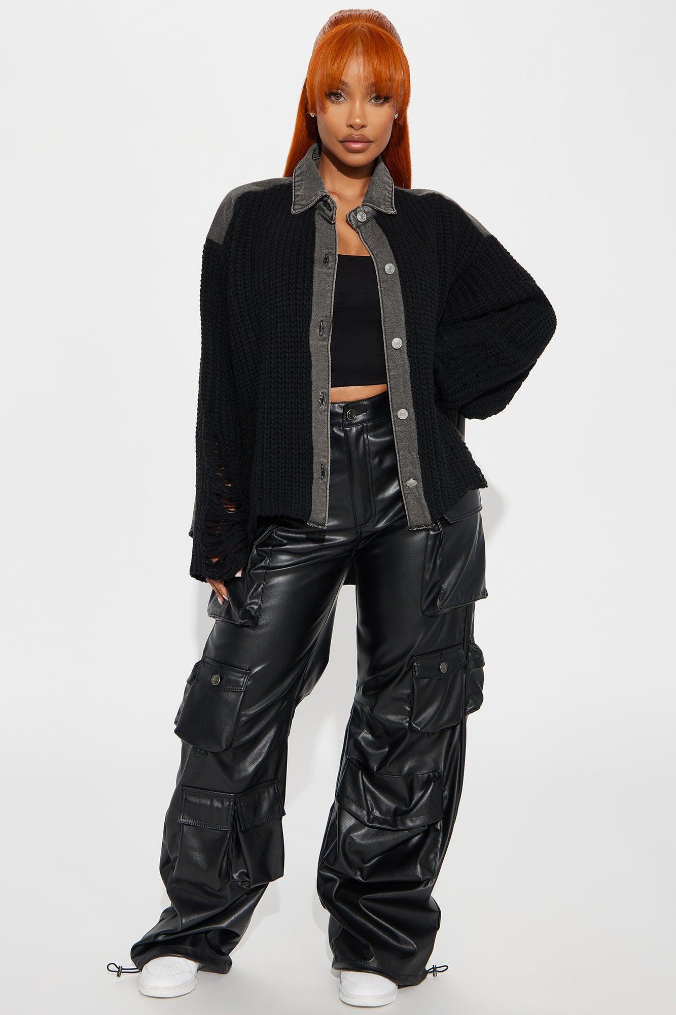 Zya Chunky Knit Denim Cardigan - Black/combo