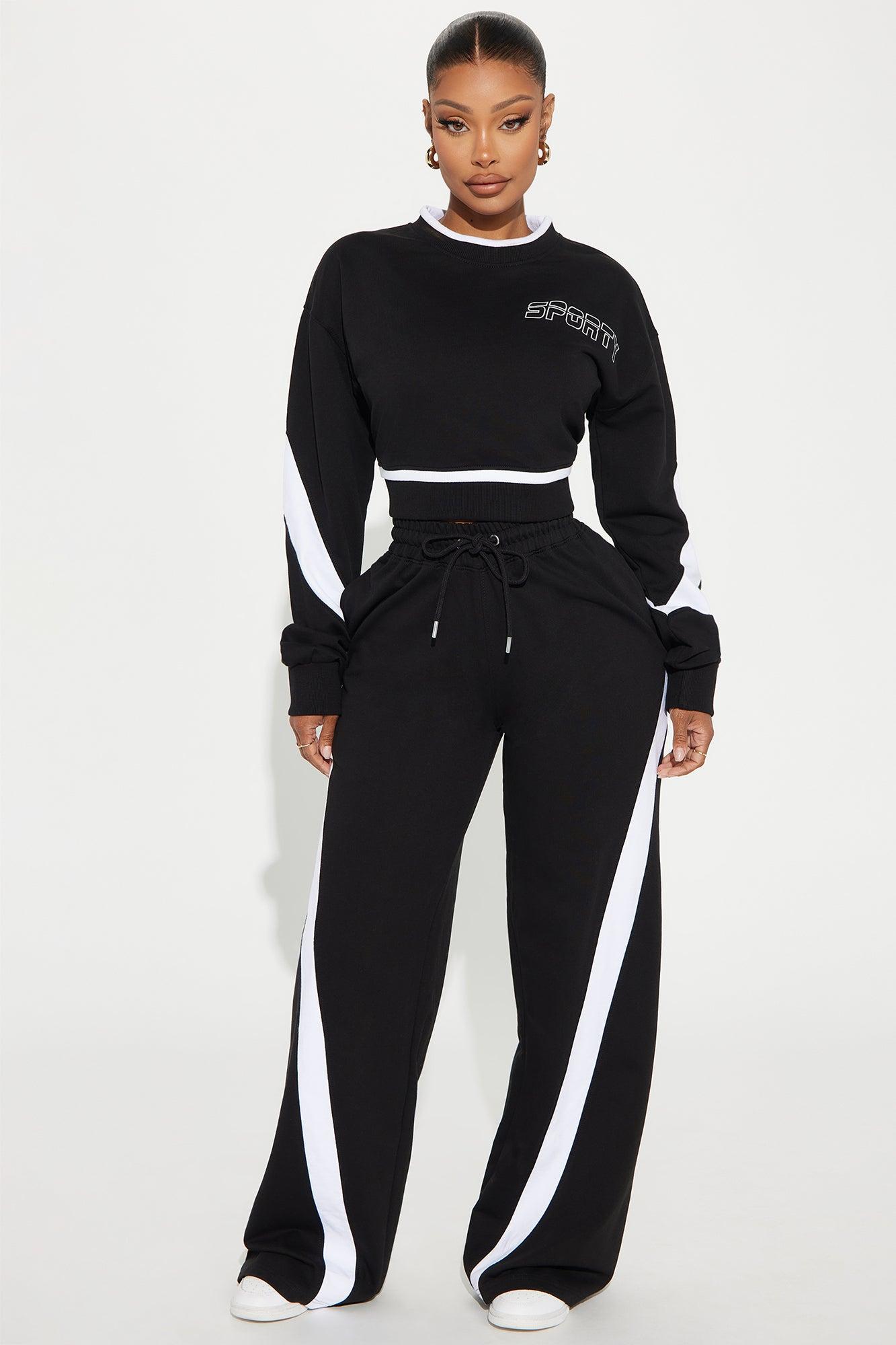 Sporty And Flirty Cropped Sweatshirt - Black/White
