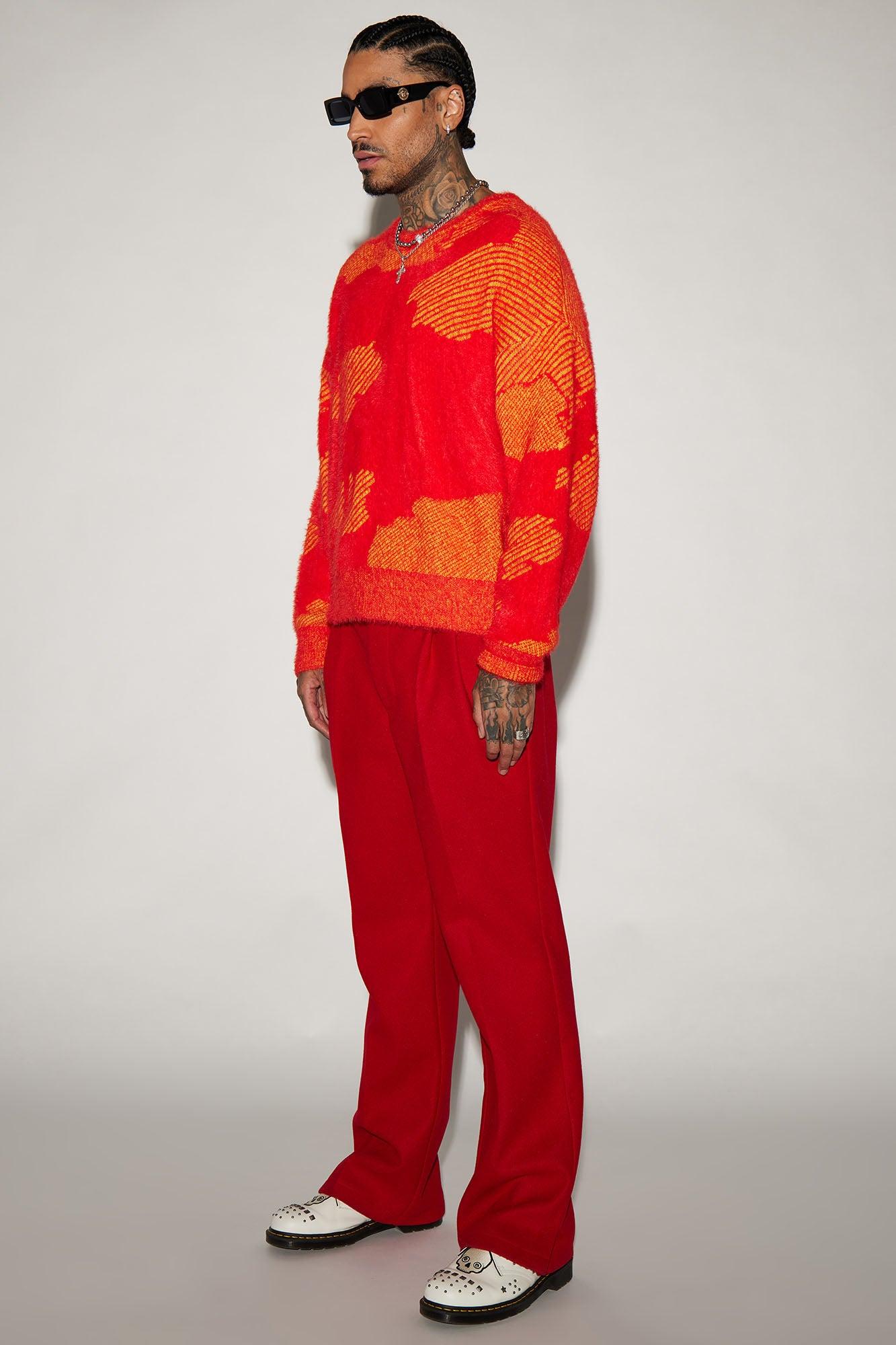 Toshio Red Stacked Flare Knitted Mohair Track Set Male