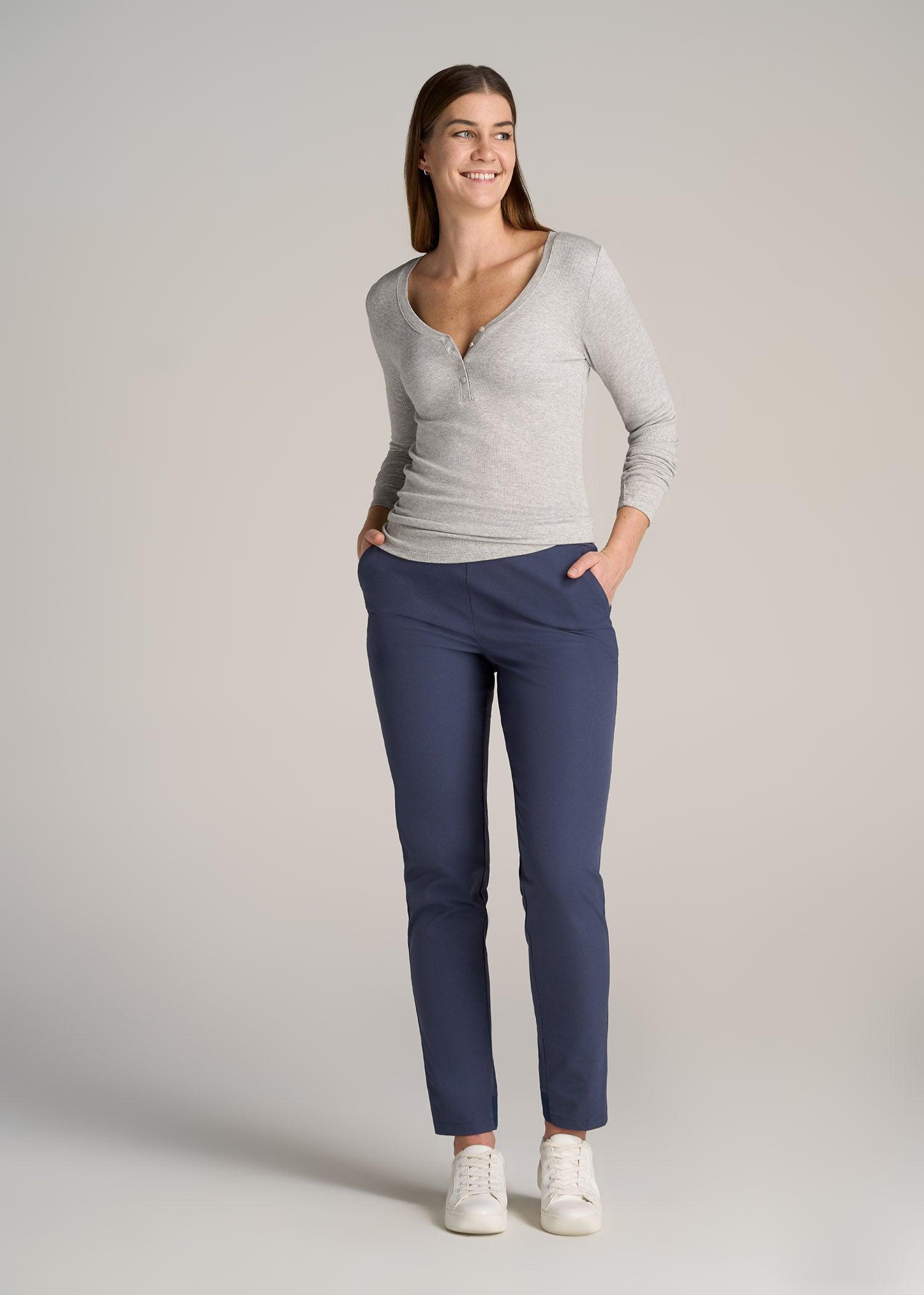 Pull On Fleece Lined Trouser Pants for Tall Women in Navy Female