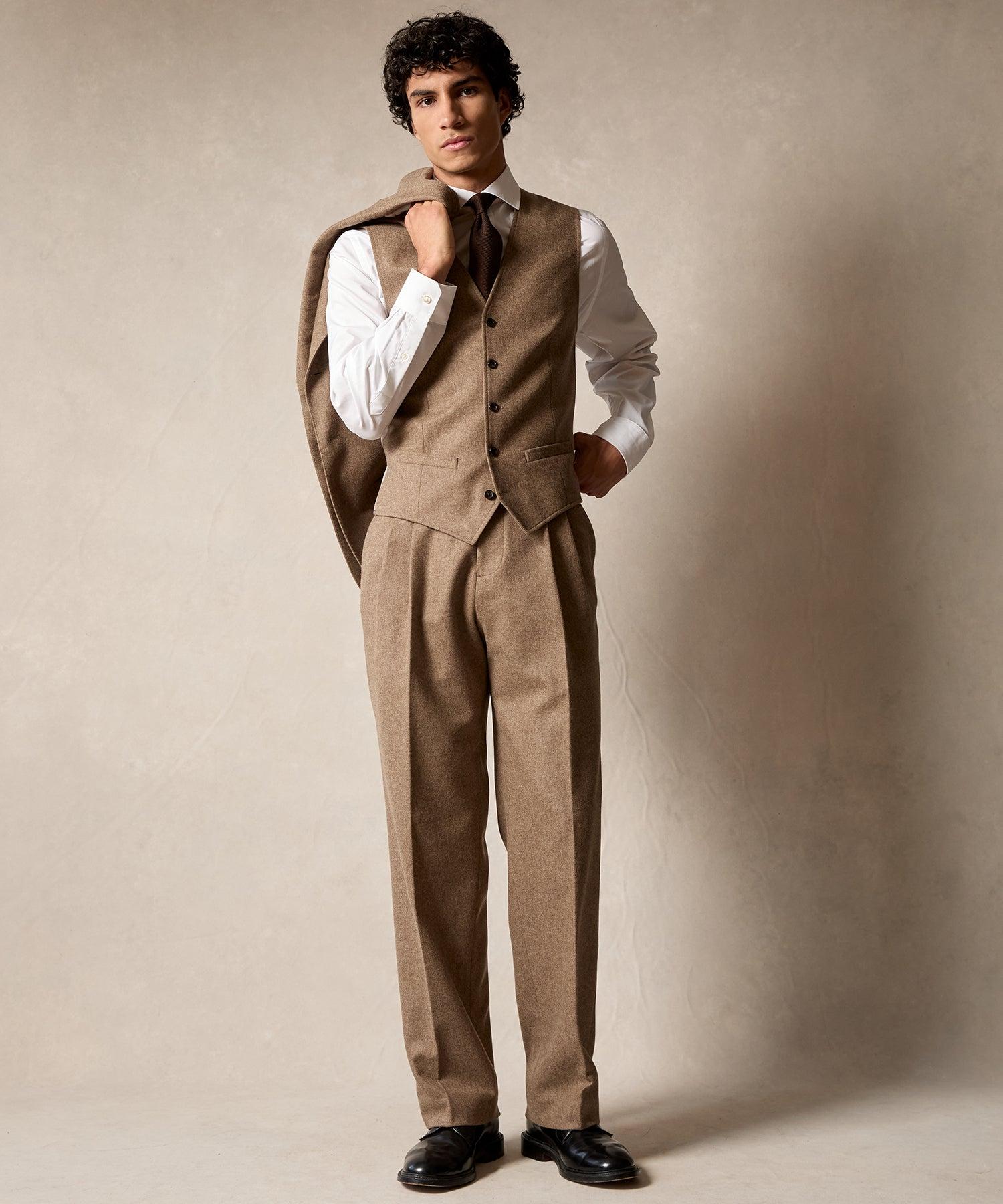 Pierre - Relaxed Fit Textured Pleated Tailored Trousers - Taupe Male