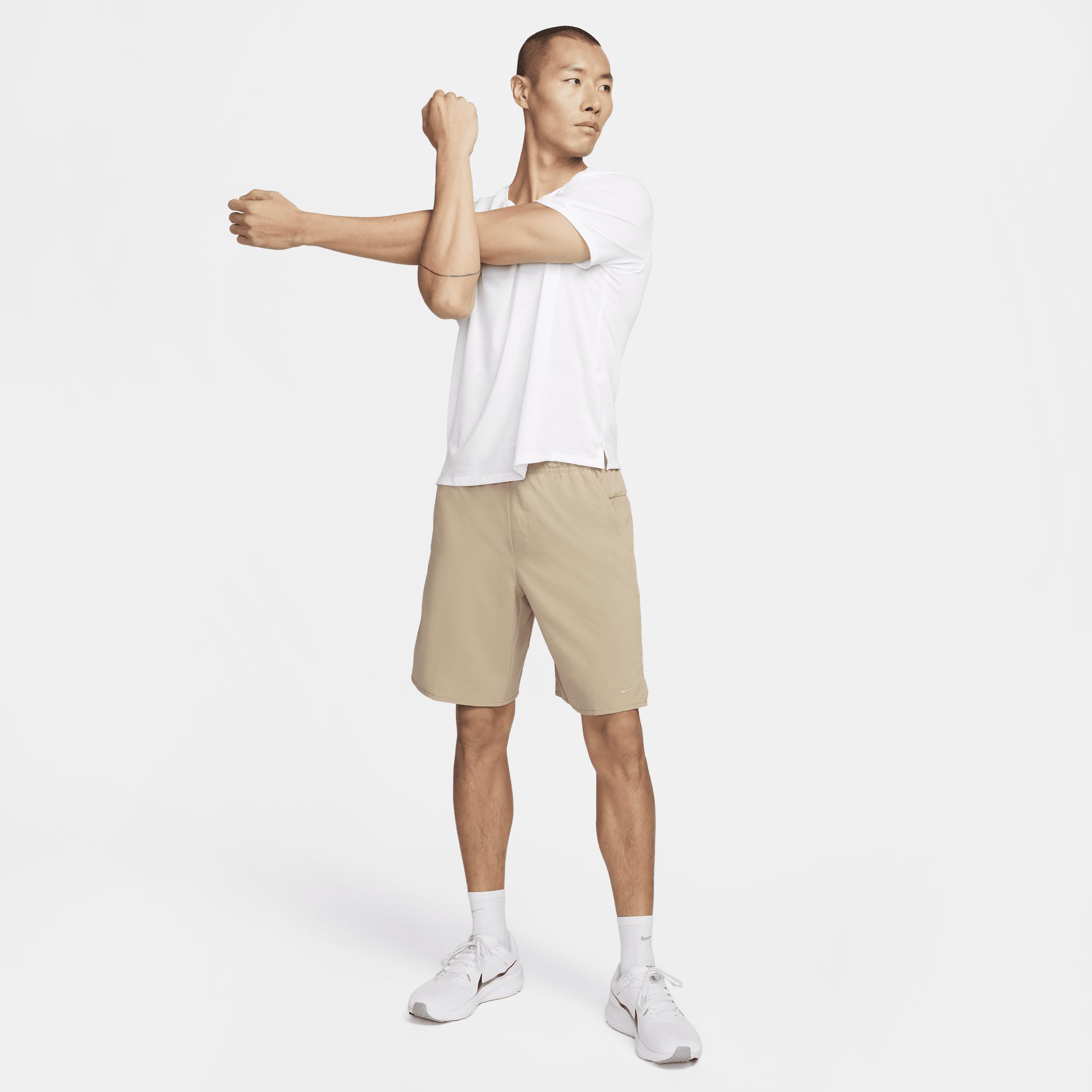 Nike Men's Unlimited Dri-FIT 9" Unlined Versatile Shorts in Beige/Khaki Size Large Polyester/Spandex