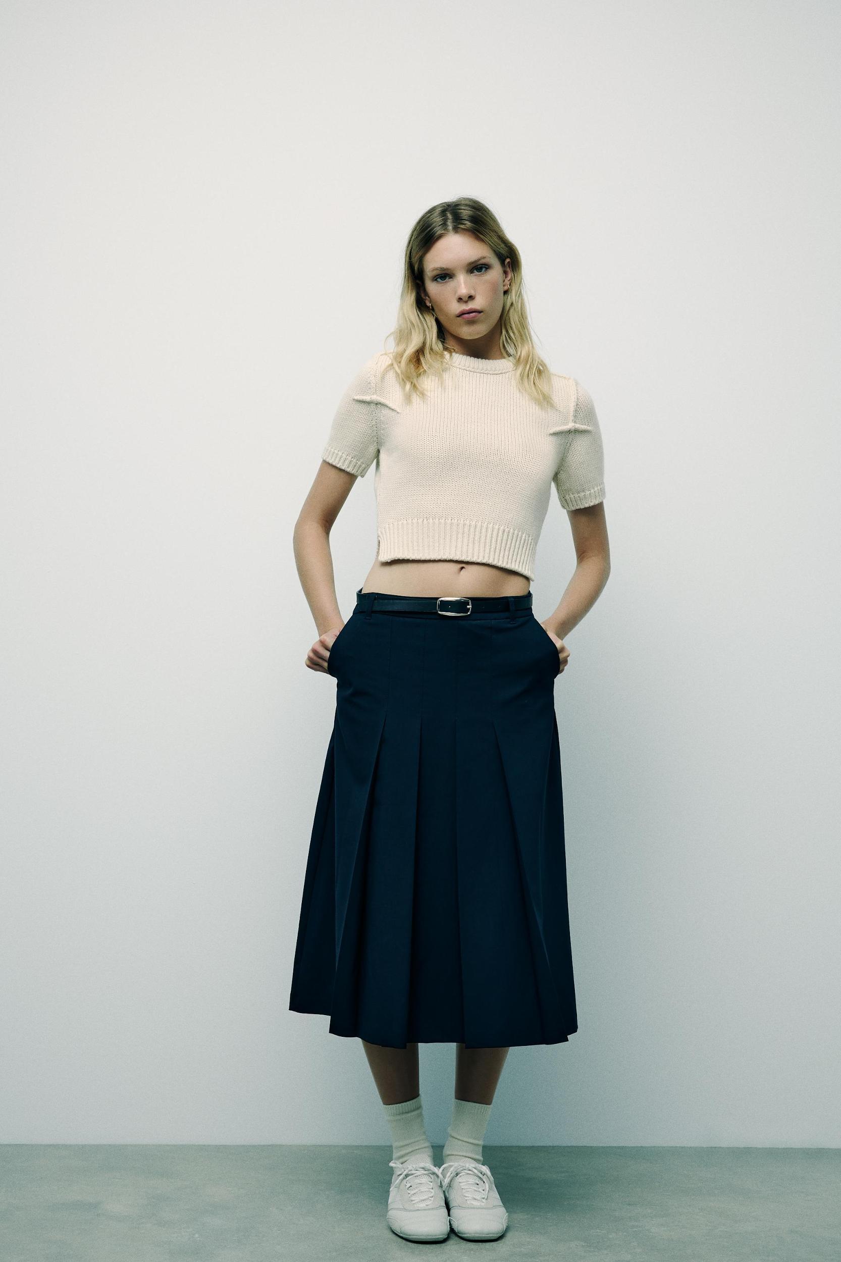 Sundry Midi Skirt - Linen High Waisted Cross Front Detail Skirt in Black