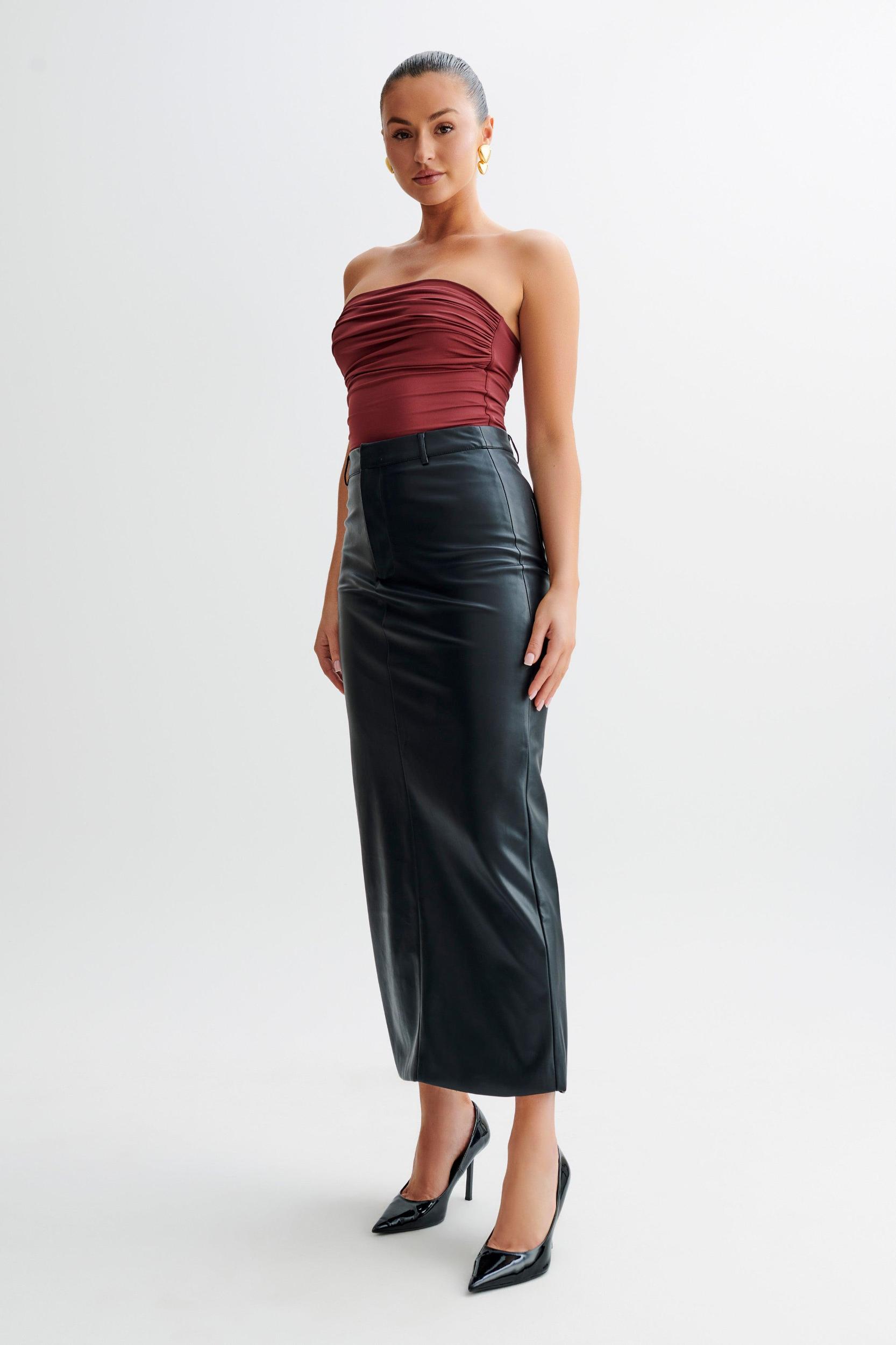 Yes Darling Coated Faux Leather Midi Skirt - Black