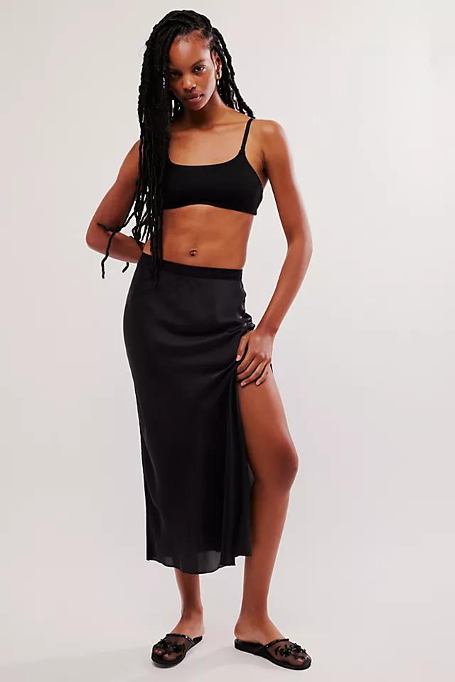 Sundry Midi Skirt - Linen High Waisted Cross Front Detail Skirt in Black