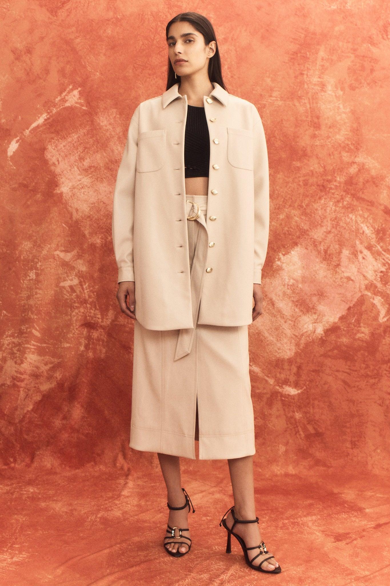 Phyllis Two Piece Set - Tailored Scoop Neck Vest Top and A Line Mini Skirt Set with Gold Buttons in White