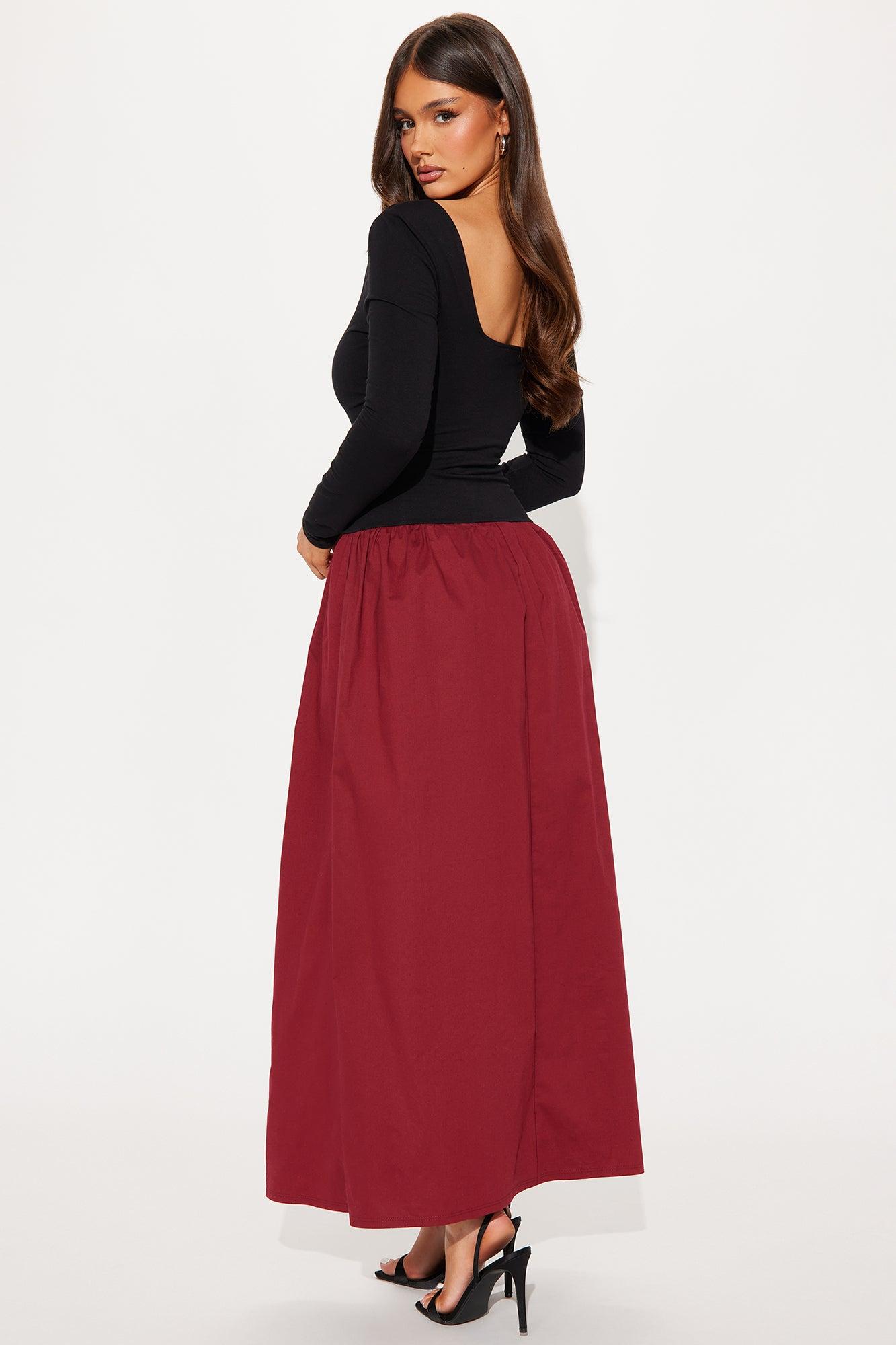 Jazmine Drop Waist Maxi Dress - Burgundy/combo
