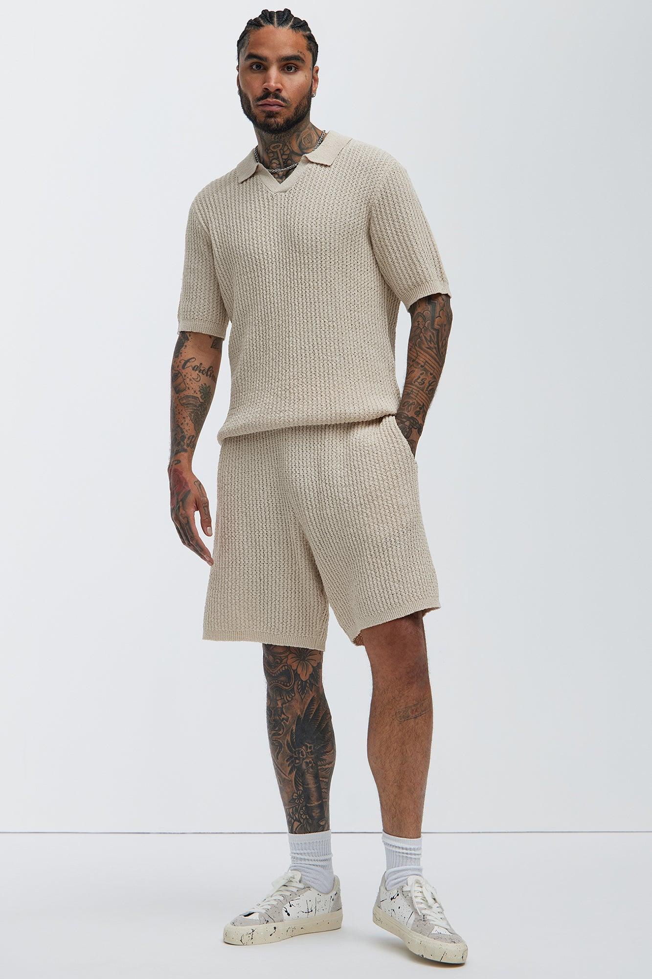 Herringbone Knit Shorts - Taupe Male