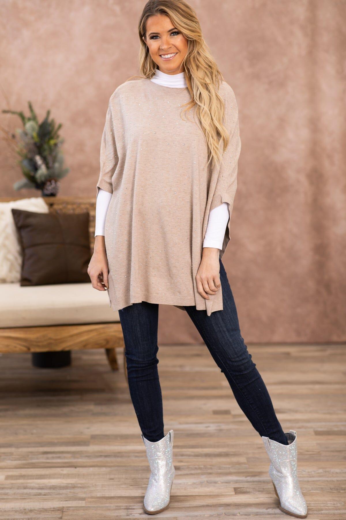 With Ease Oatmeal Mock Neck Sweater Tunic Female