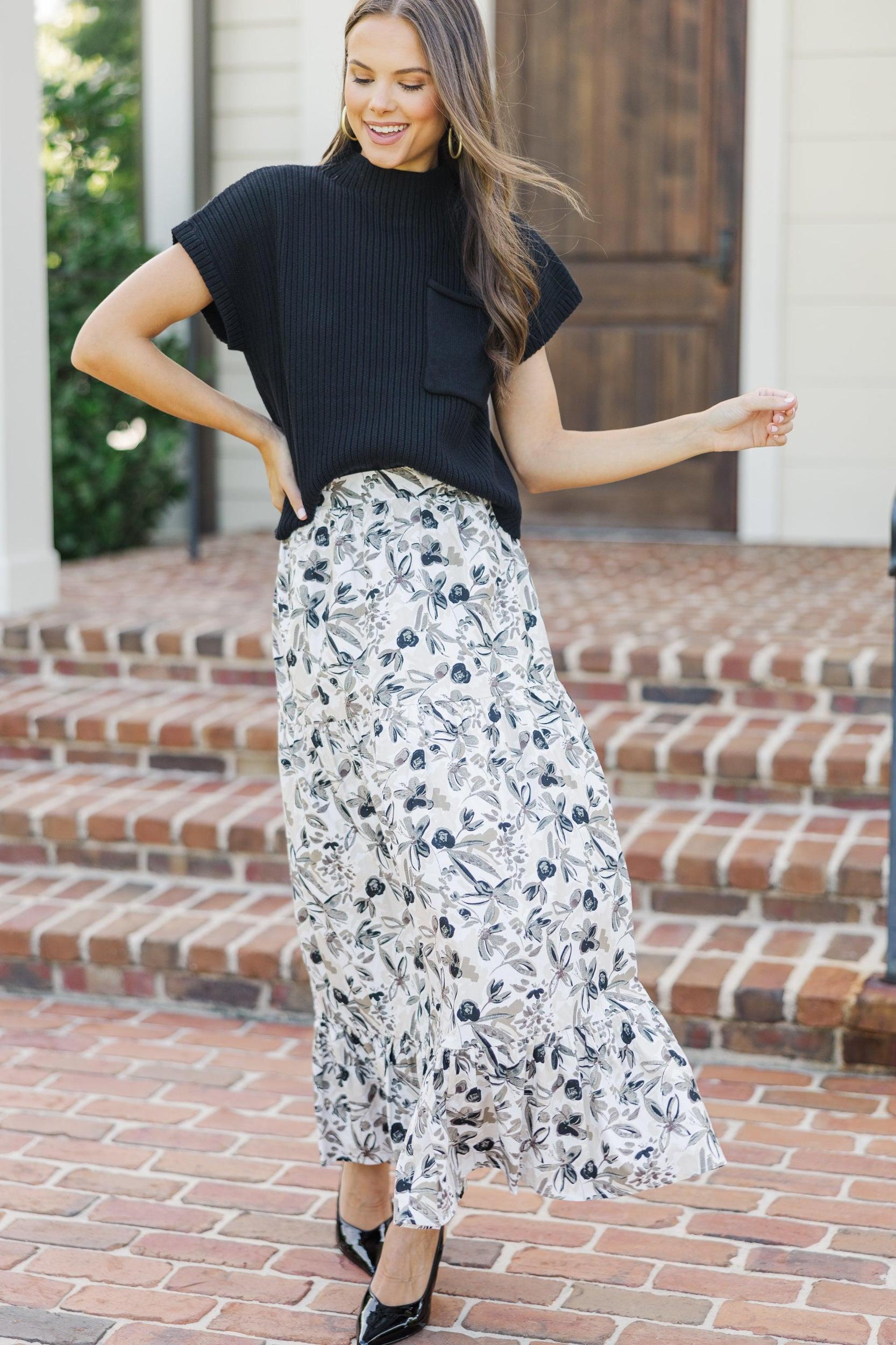 How I Feel Taupe Floral Midi Skirt Female