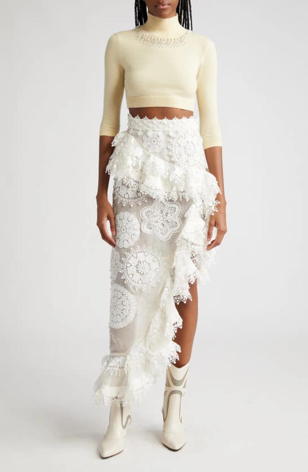 Artemis Lace Plisse Maxi Skirt - Ivory