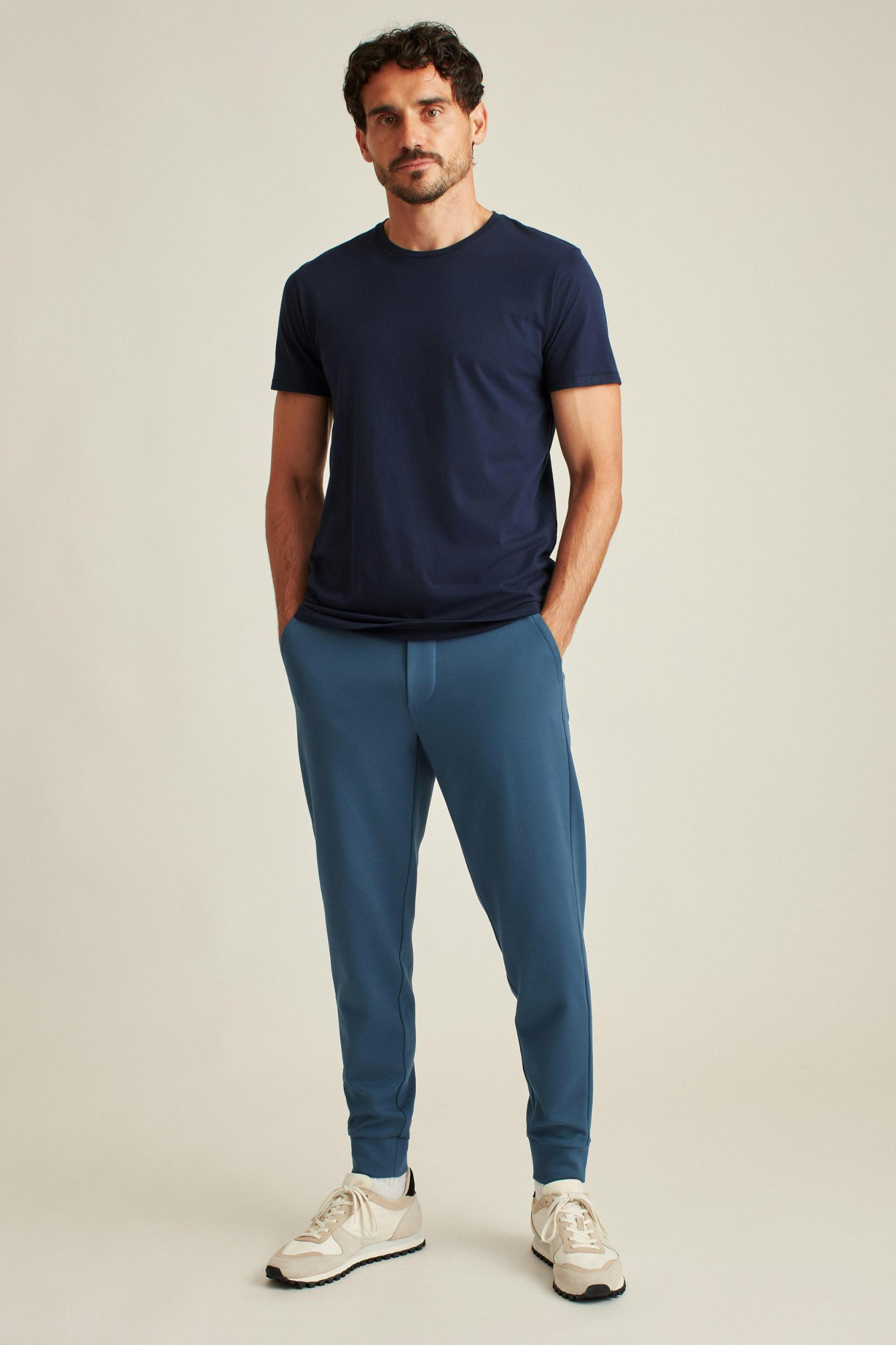 Modern Fit Garment Dyed Cotton T-Shirt for Tall Men in Evening Blue Male