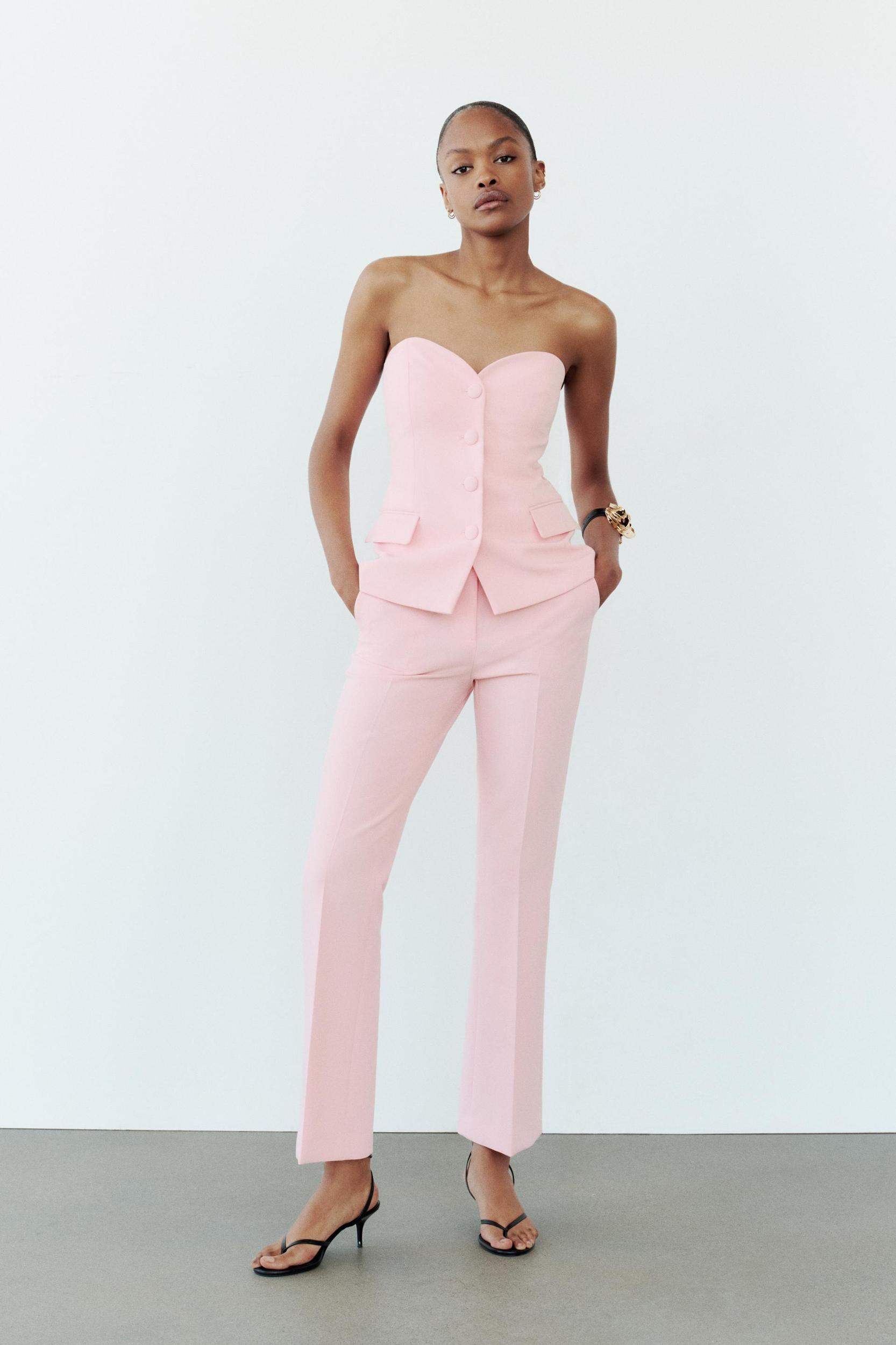 Pull On Tuxedo Stripe Pants for Tall Women in True Navy and Radiant Red Female
