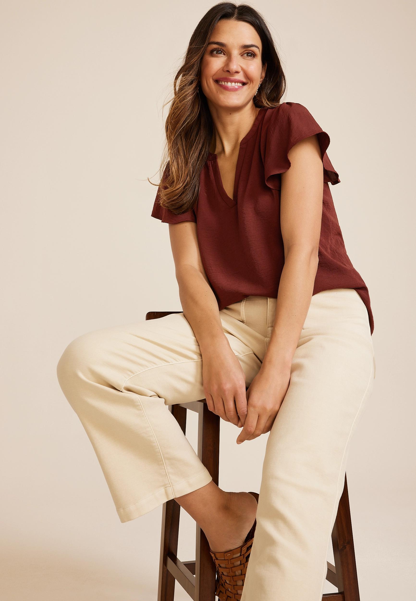 Maurices Womens X Small Size Atwood Flutter Sleeve Blouse Brown