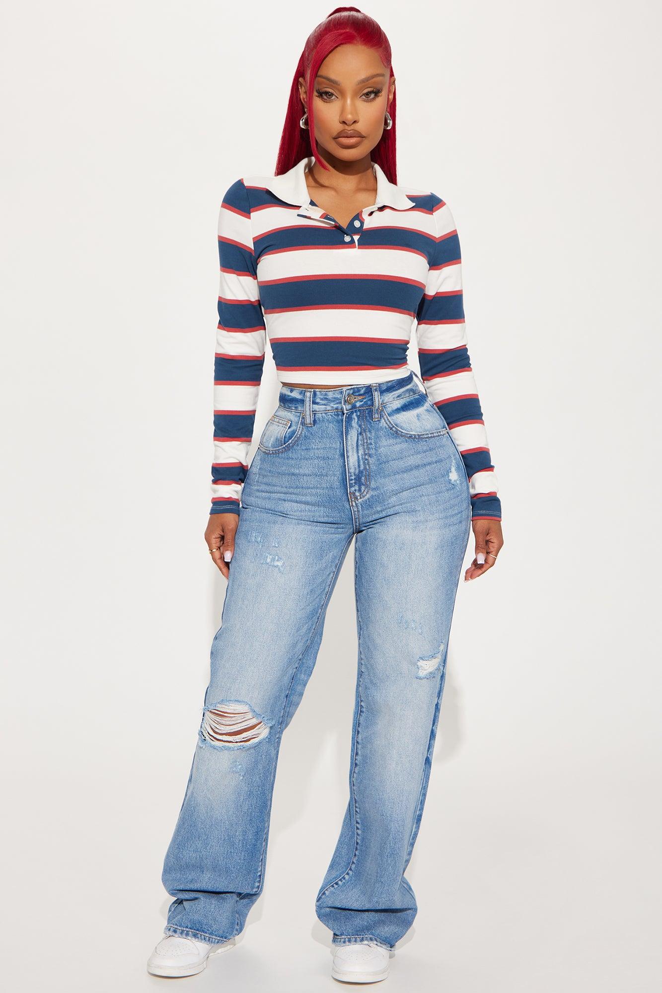 Avalon Indigo Knit Top in Blue/White Rugby Stripe