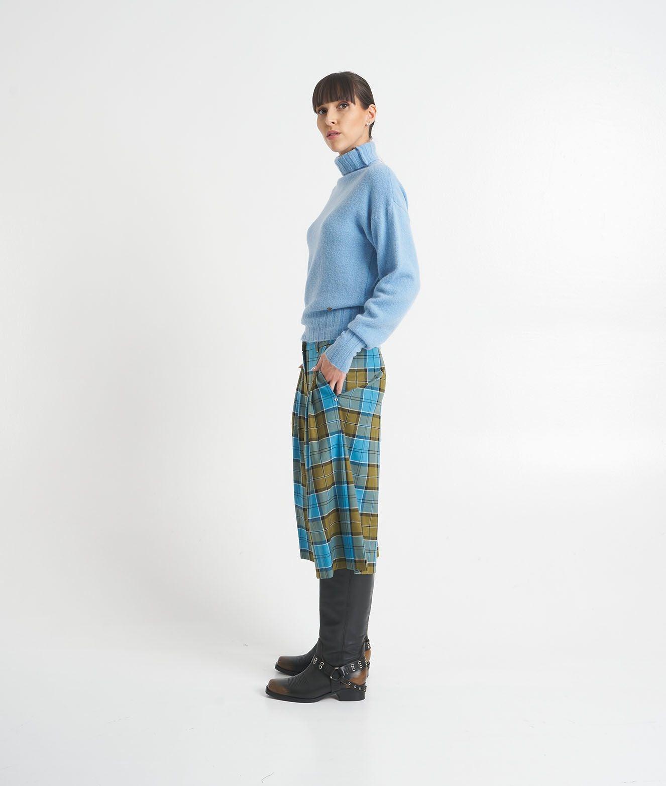 Light Blue Acid Wash Seam Detail Denim Mini Skirt