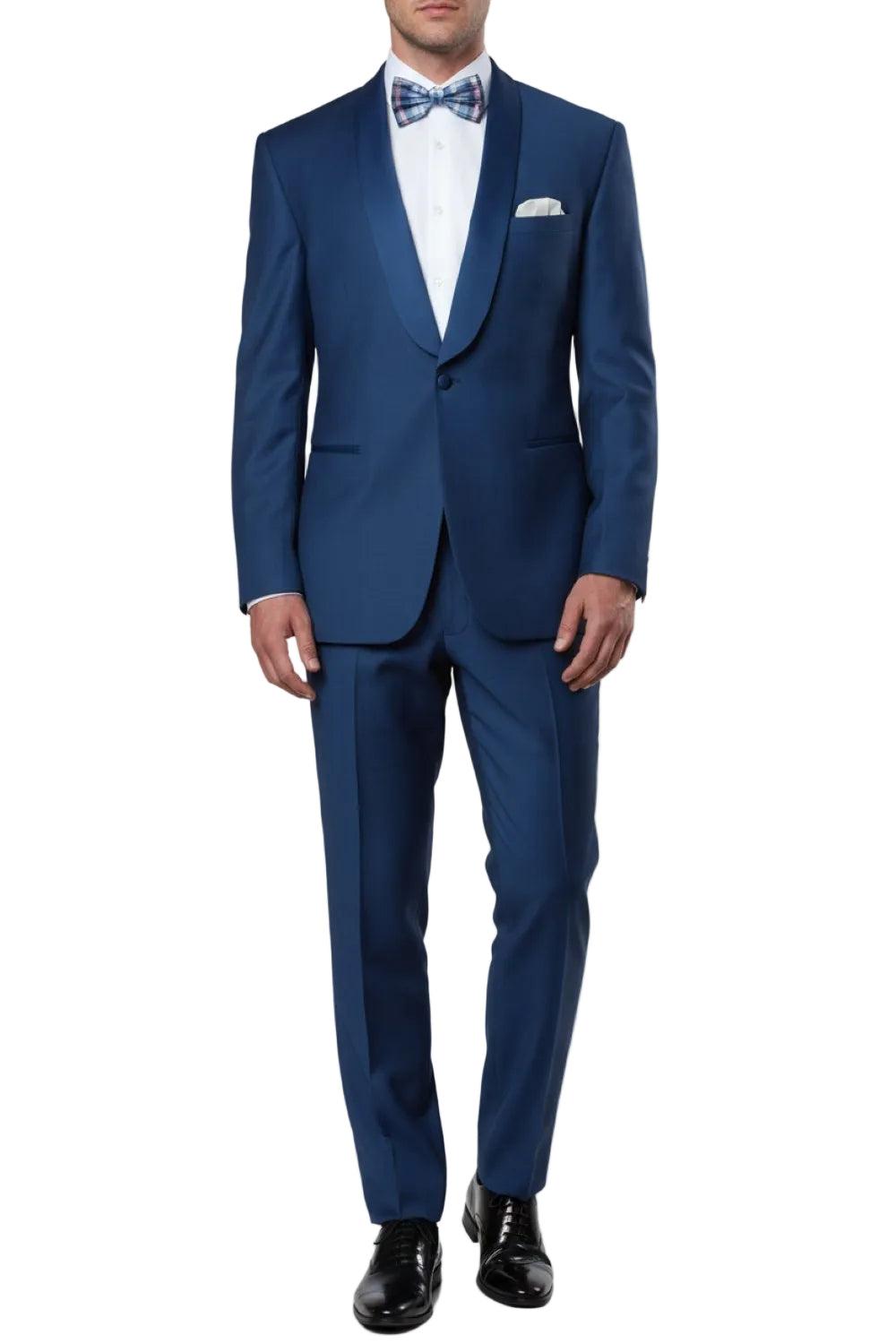 Jacket: 1 Button Front Closure Satin Shawl Collar, Side Vents Interior French Facing Two Besom Front Pockets with Flap Closure Pants: Flat Front-Tapered Two Back Besom Pockets with Button Closure Two Front Angled Slip Pockets Lined to the Knee Zip Fly and Extended Button Closure on Waistband Un-Hemmed Bottoms for Alteration Ease More Colors Available