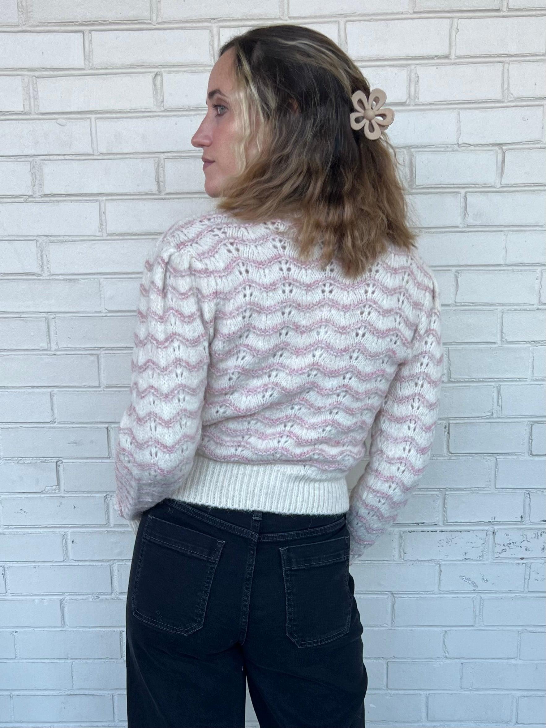 Stay cozy and fashionable in our Jaylani Sweater! With a crewneck and long-sleeve design, this lattice knit sweater features a playful pink zigzag pattern. Perfect for adding a pop of fun to your outfit!