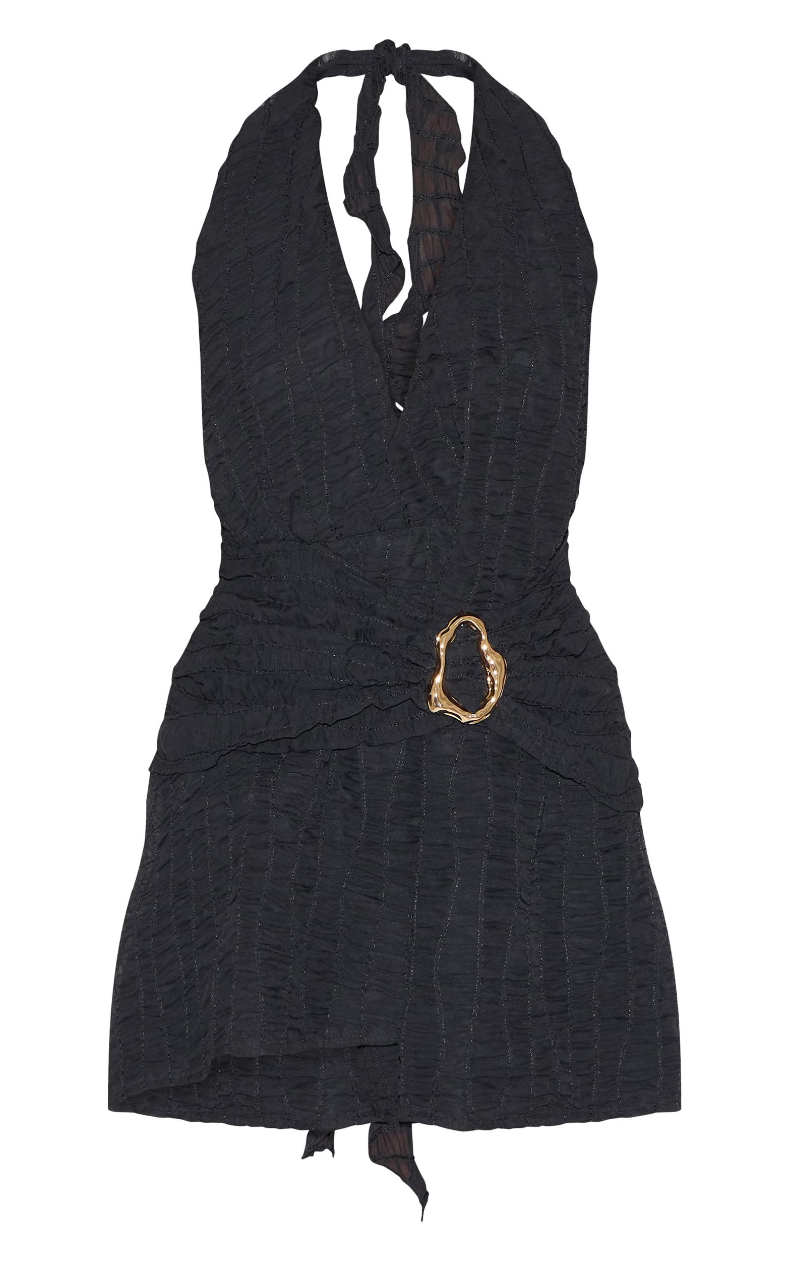 Make a statement this season in this black textured v neck belt shift dress. Featuring a gold accent belt, this dress has a plunging neckline with a tie fastening halter neck. For refined glamour, style this piece with a gold bangle stack, classic strappy kitten heels and your favorite earrings. Length approx 81.5cm/32inch (Based on sample size US 4)Model wears size UK 8/ EU 36/ AUS 8/ US 4Model Height - 5ft 9inchp]:!mb-4inch>Brand: PrettyLittleThingCategory: DressesProduct type: Shift DressColor: BlackMaterial: Textured JerseyDesign: PlainNeckline: V NeckSleeves: SleevelessOccasion: Evening