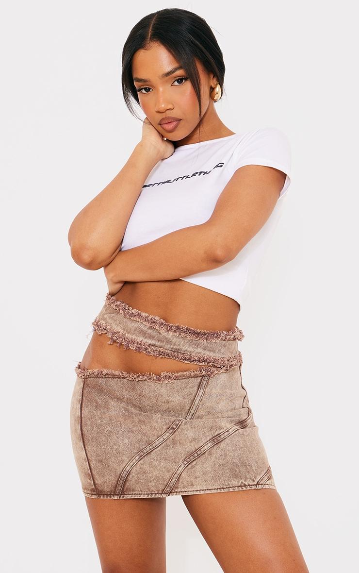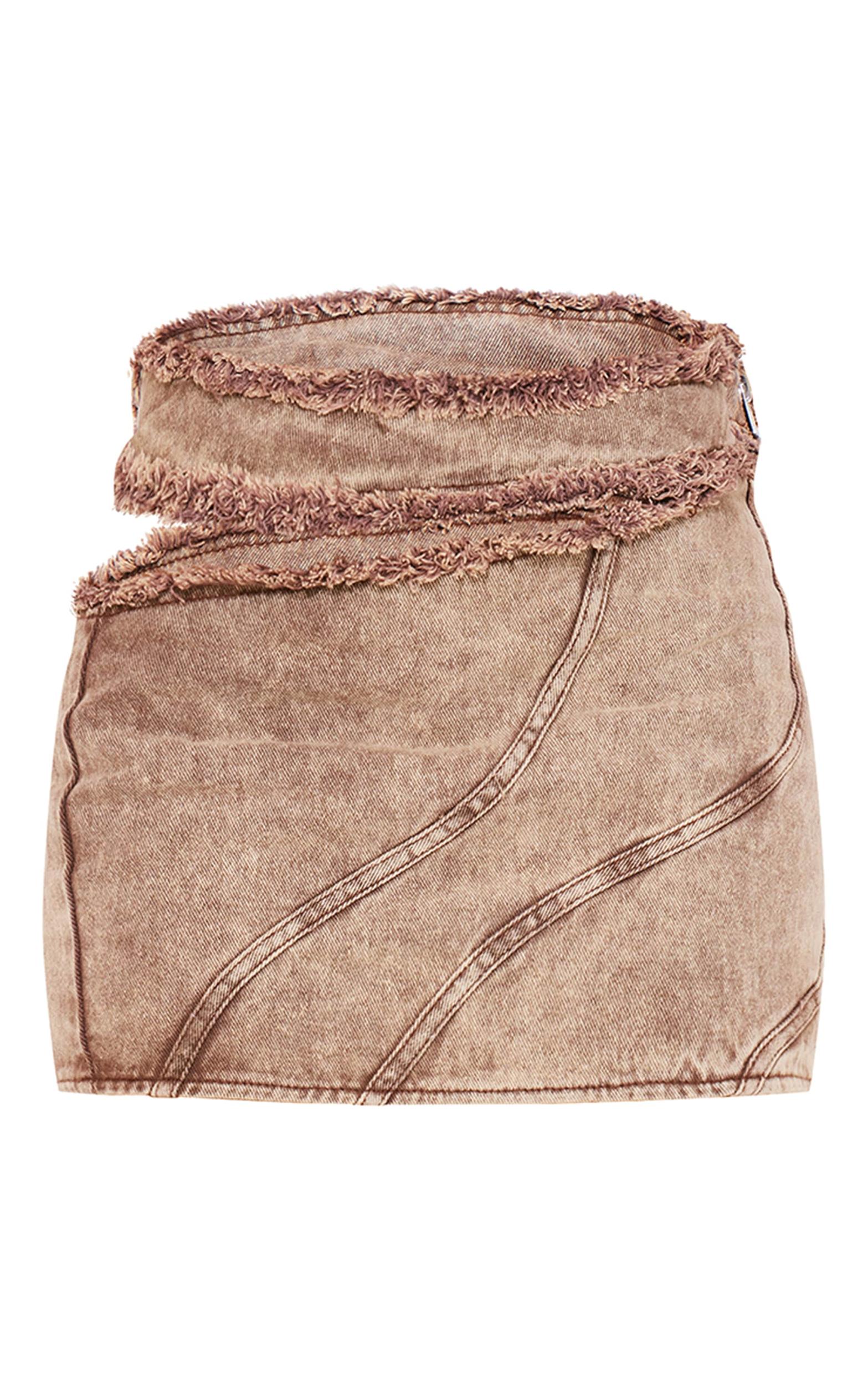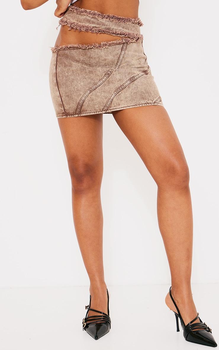 Take the stress out of weekend styling with this unreal brown acid wash frayed edge cut out mini skirt. Brought to you in a brown acid wash material with a frayed edge and a cut out design, you really can't go wrong with this mini skirt. Style with the matching top, clear strap heels and gold accessories for a look that will have eyes on you for all the right reasons. Length approx 33cm/13inch (Based on a sample size UK 8) Model wears size UK 8/ EU 36/ AUS 8/ US 4Model Height - 5ft 7inchp]:!mb-4inch>Category: DenimProduct type: SkirtColor: Washed BrownMaterial: Rigid DenimOccasion: Day