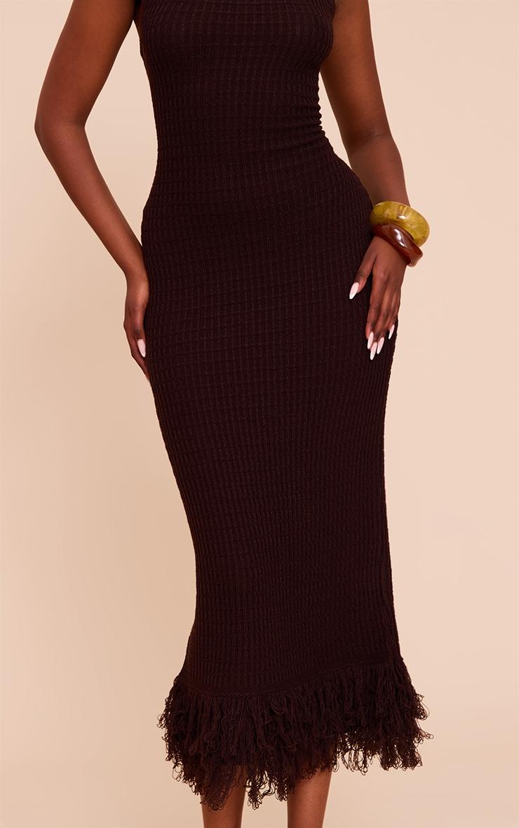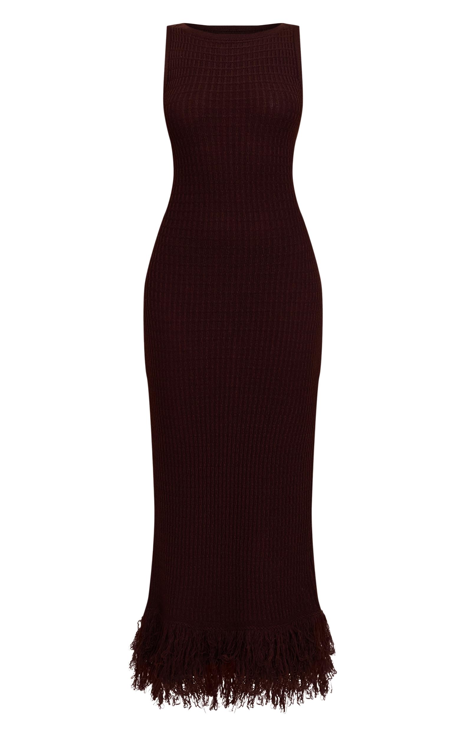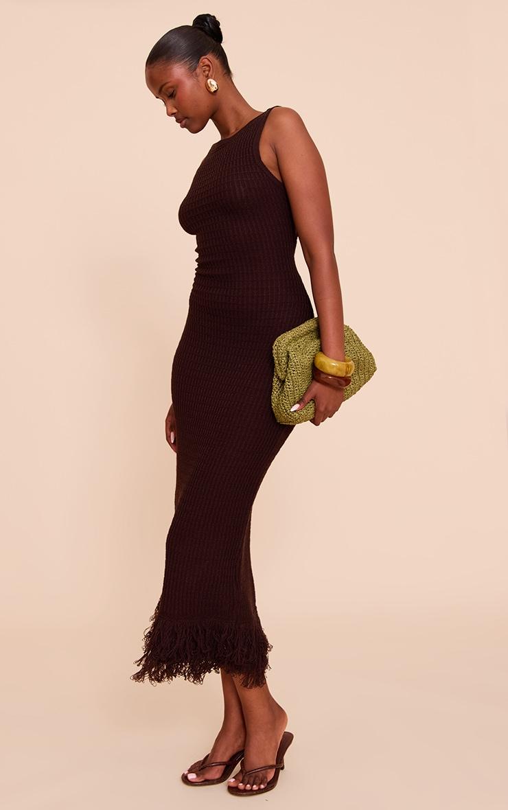Make a textural statement with this chocolate loop knit maxi dress, perfect for cosy days with a stylish twist. Brought to you in a chocolate loop knit fabric with a figure-skimming silhouette and a flattering scoop neckline, it blends comfort with standout detail. Pair with some slip on heels and gold accessories for a chic layered look.Length approx 155cm/61inch (Based on sample size S)Model wears size SModel Height - 5ft 9inchp]:!mb-4inch>Brand: PrettyLittleThingCategory: KnitwearProduct type: Bodycon DressColor: ChocolateMaterial: KnitNeckline: CrewSleeves: SleevelessOccasion: Evening