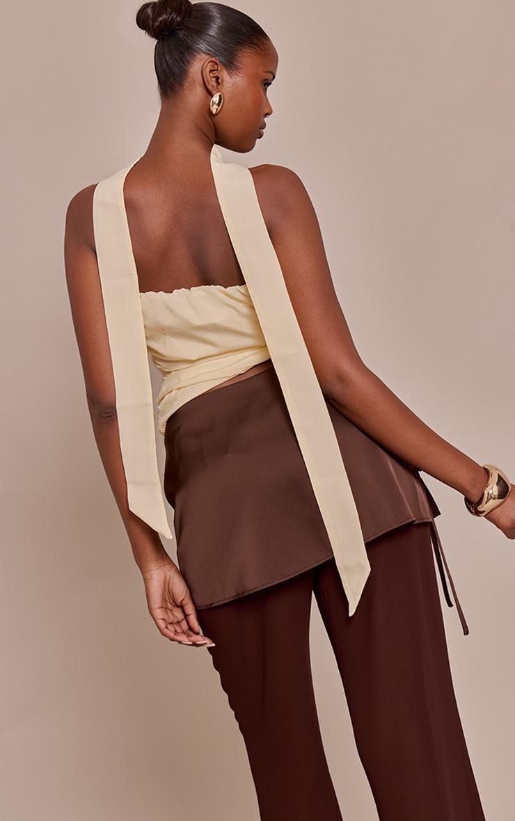 Command attention. The cream chiffon bandeau scarf detail top redefines evening elegance with its sleek, off-the-shoulder silhouette and artfully draped scarf detail that trails effortlessly. This cream essential is designed to make an impact, offering a refined cropped cut. Team it with high-waisted tailored pants, the perfect pair of heeled mules, and a collection of delicate gold bracelets for an undeniably confident evening look.Length approx 34.5cm/13.5inch (Based on sample size US 4)Model wears size UK 8/ EU 36/ AUS 8/ US 4Model Height - 5ft 9inchp]:!mb-4inch>Brand: PrettyLittleThingCategory: TopsProduct type: Cami TopColor: CreamMaterial: ChiffonDesign: PlainNeckline: BandeauSleeves: SleevelessOccasion: Evening