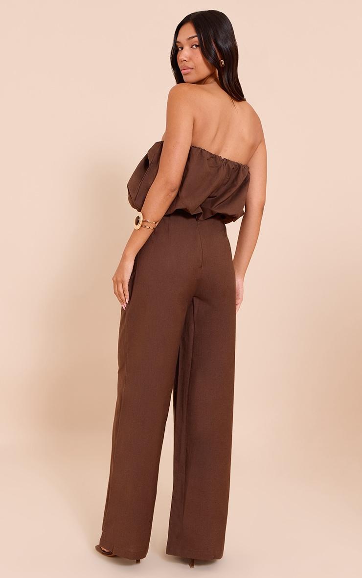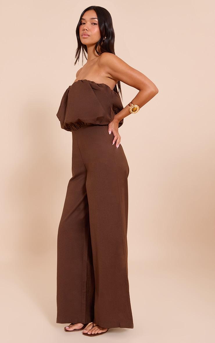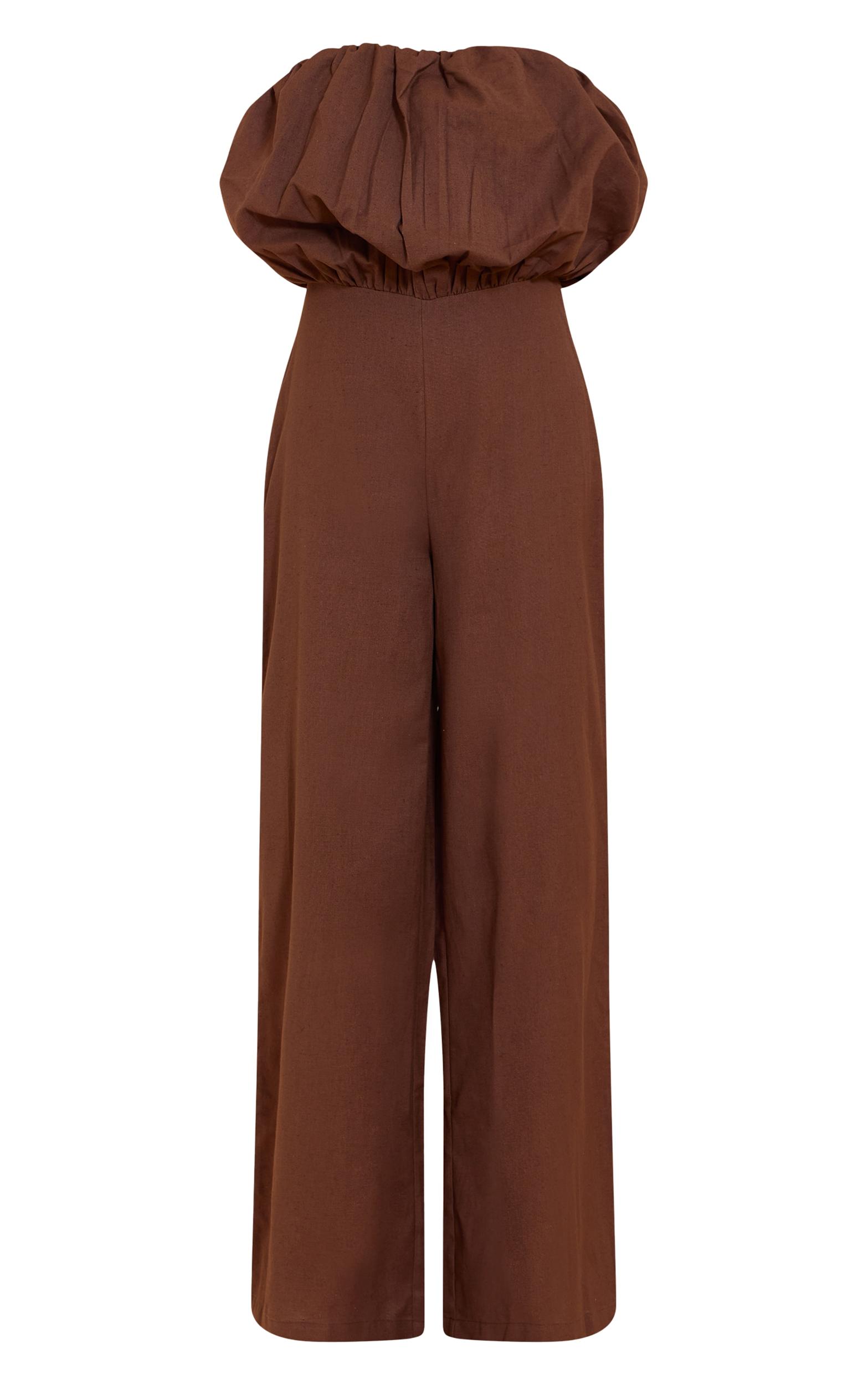 Stand out from the crowd in this Dark Chocolate Cotton Puffball Bandeau Straight Leg Jumpsuit. Crafted from deep brown cotton material, this jumpsuit had a fashion-forward puffball bodice, a bandeau neckline and flowing straight legs. For an effortlessly chic look, team it with detailed kitten heels, a gold bangle and your go-to miniature gold hoop earrings.Length approx 145cm/57inch (Based on sample size US 4)Model wears size UK 8/ EU 36/ AUS 8/ US 4Model Height - 5ft 9inchp]:!mb-4inch>Brand: PrettyLittleThingCategory: Jumpsuits & PlaysuitsProduct type: Wide Leg JumpsuitColor: Dark ChocolateMaterial: Cotton PoplinDesign: PlainOccasion: Day