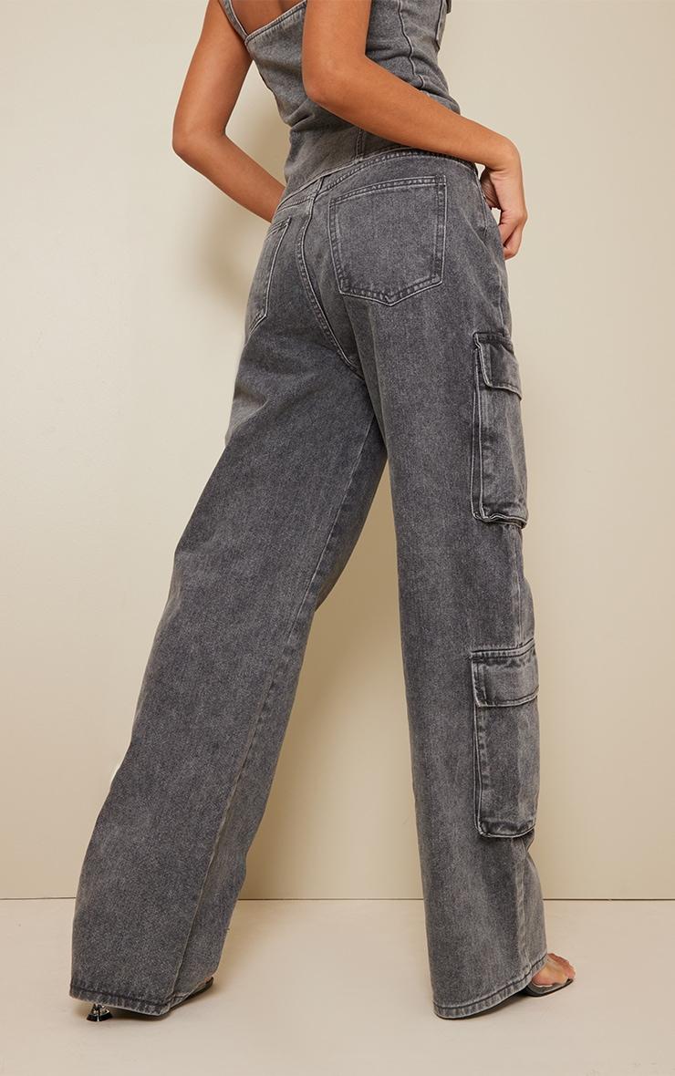 Get ready to earn all the style points with these jeans. Featuring a grey acid wash material with cargo style pockets and a wide leg fit. Team with a matching hue top and clear heels for a look we can't get enough of. Length approx 86.5cm/34inch (Based on a sample size UK 8) Model wears size UK 8/ EU 36/ AUS 8/ US 4Model Height - 5ft 8inchp]:!mb-4inch>Brand: PrettyLittleThingCategory: DenimProduct type: Wide Leg JeansColor: GreyMaterial: Rigid DenimDesign: PlainOccasion: Day