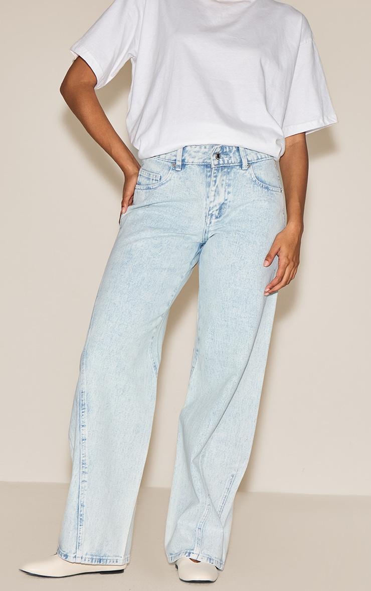 Own your off-duty looks in these ice blue seam detail relaxed wide leg jeans. Made from ice blue toned denim, these jeans have seam detailing, a zip fastening and a wide leg fit. For a chic look, pair them with an oversized white tee and neutral ballet flats.Length approx 76cm/30inch (Based on sample size US 4)Model wears size UK 8/ EU 36/ AUS 8/ US 4Model Height - 5ft 7inchp]:!mb-4inch>Brand: PrettyLittleThingCategory: DenimProduct type: Wide Leg JeansColor: Ice BlueMaterial: Rigid DenimDesign: PlainOccasion: Day