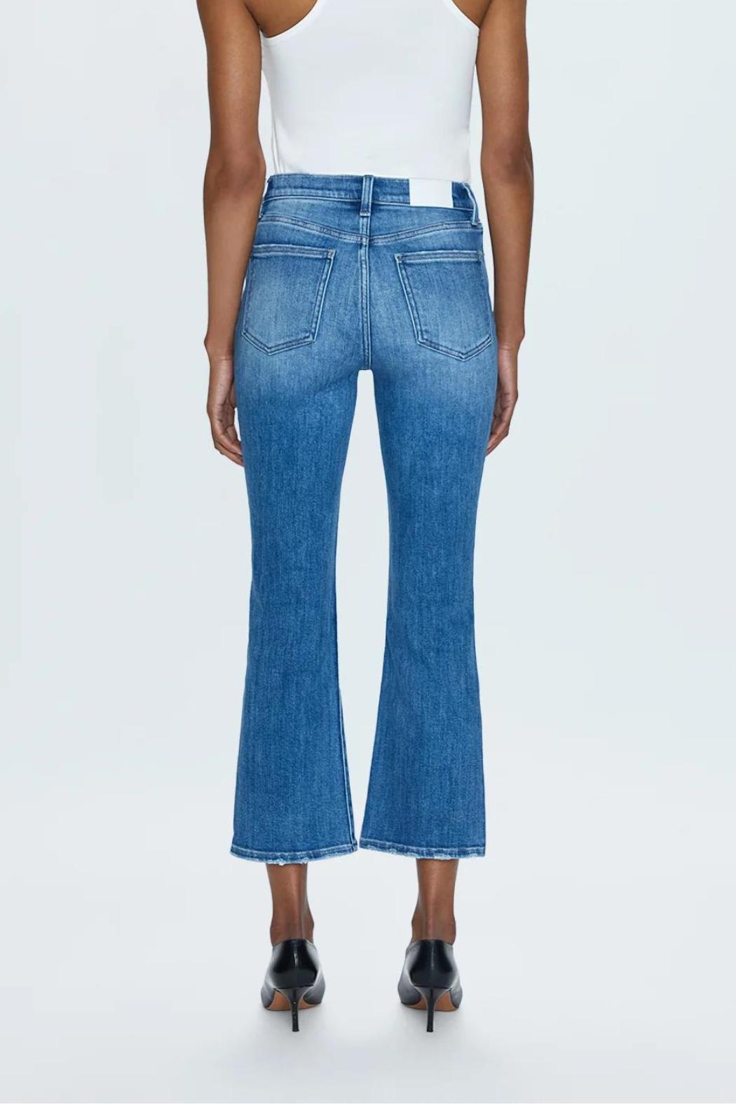The best selling bootcut silhouette with a high rise waist and cropped ankle hem with a clean finish. Crafted from the best selling comfort-stretch denim. Fling Vintage is a classic medium blue denim wash with lived-in fading, vibrant whiskering, and barely-there hints of distressing.