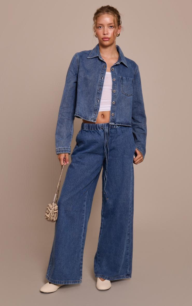 Keep it cool in the mid blue wash relaxed long sleeve cropped denim shirt. Made from a mid blue denim fabric with long sleeves and a cropped relaxed fit, it offers laid-back edge. Style with high-rise jeans or a maxi skirt and a pair of clear heels or sneakers for an easy off-duty outfit.Length approx 48.5cm/19inch (Based on sample size US 4)Model wears size UK 8/ EU 36/ AUS 8/ US 4Model Height - 5ft 7inchp]:!mb-4inch>Brand: PrettyLittleThingCategory: DenimProduct type: Denim ShirtColor: Mid Blue WashMaterial: Rigid DenimDesign: PlainNeckline: ShirtSleeves: LongOccasion: Day