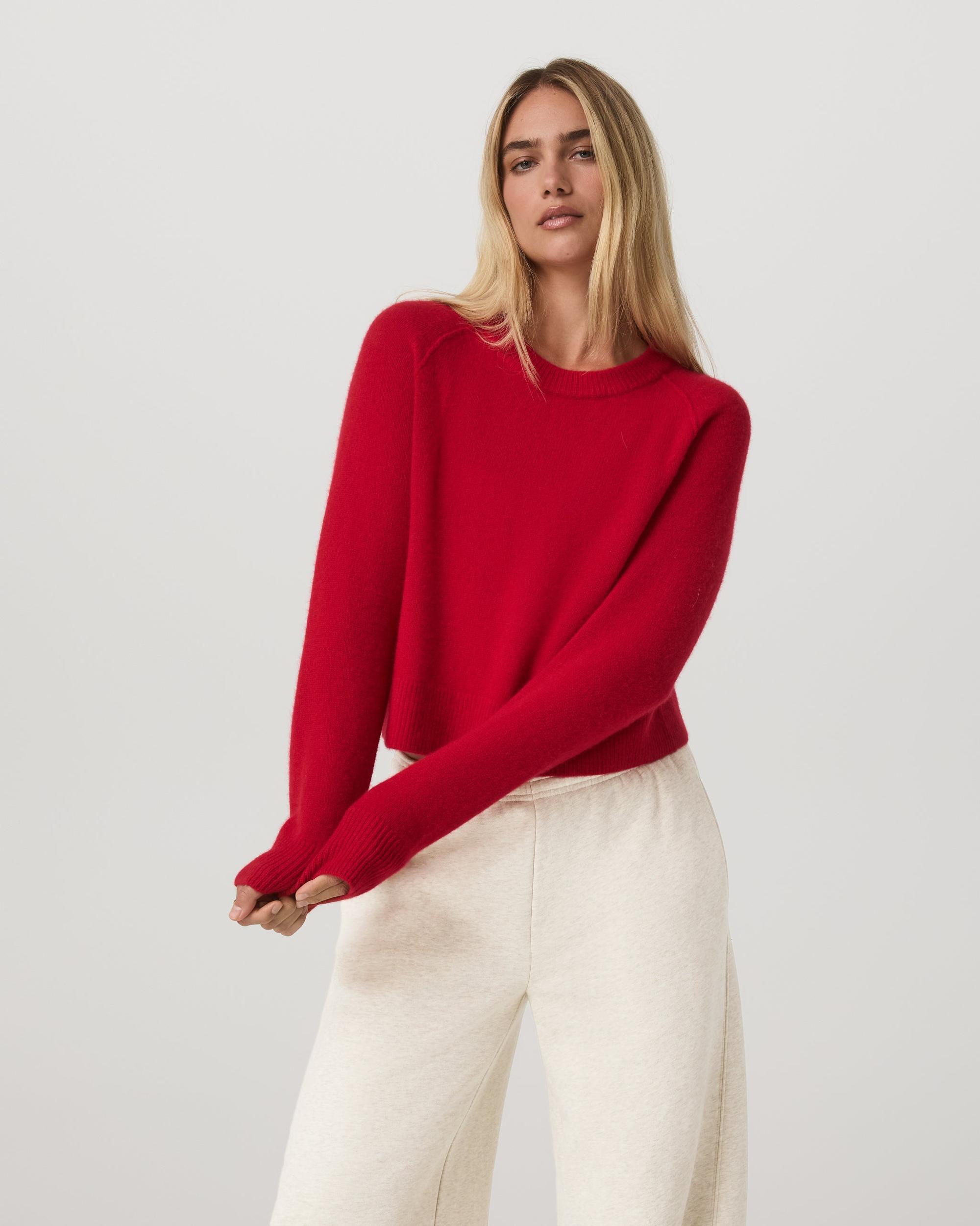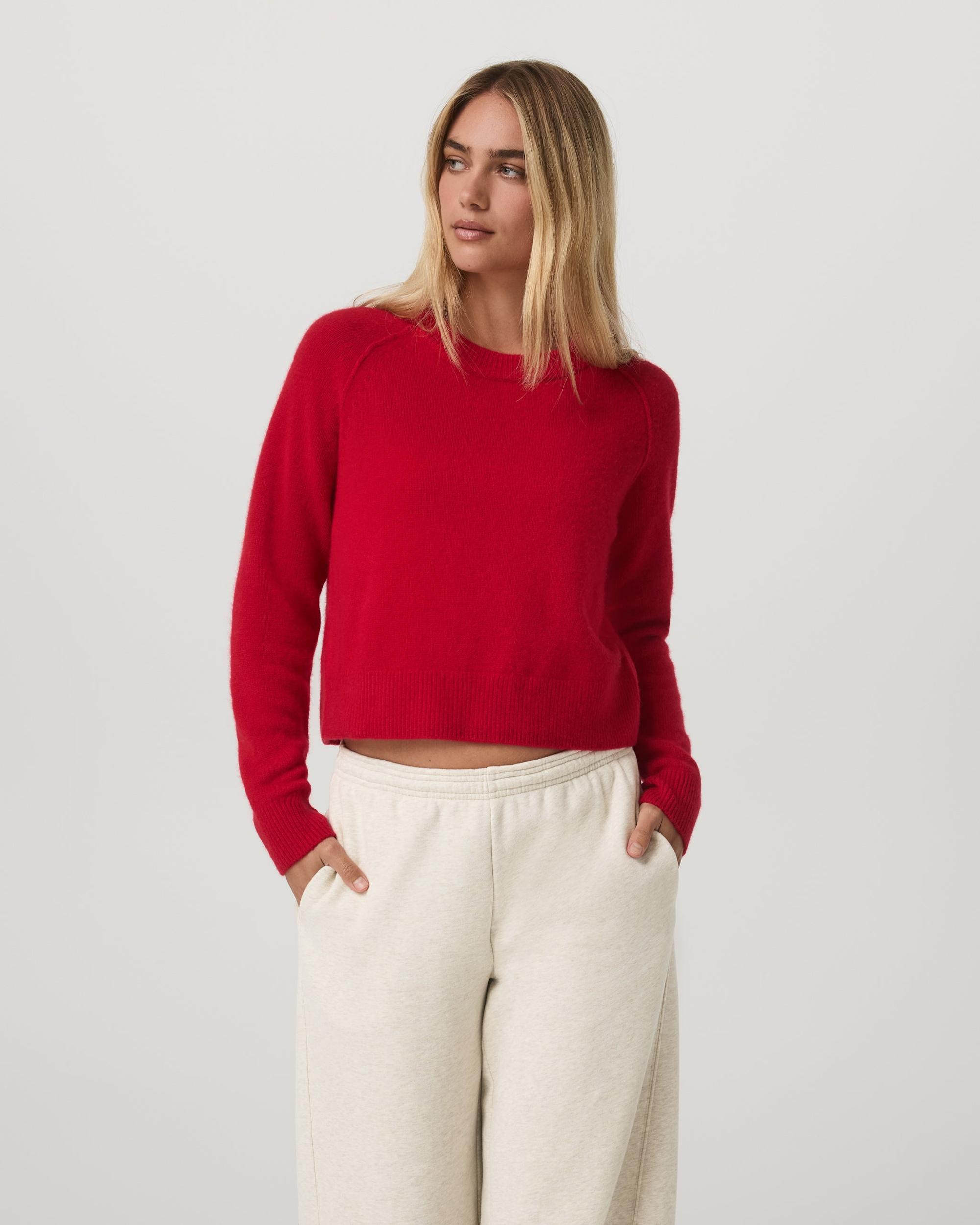 Shop the Émilie Cashmere Crew in Cherry. This women’s pullover features 100% cashmere with 60% recycled fibers & a timeless crewneck for cozy layering.