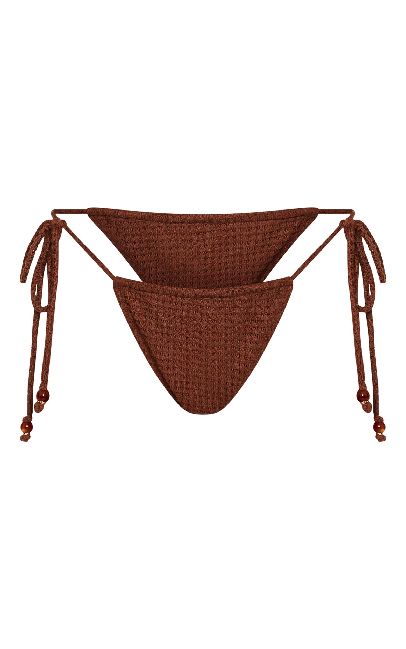 Channel bohemian goddess energy with the mocha crochet bead trim halter neck maxi beach dress. With its open knit design and beaded neckline, this piece is made for layering over your fave bikini and pairing with platform sandals. Length may vary due to crochet knitLength approx 28cm/11inch (Based on sample size US 4)Model wears size UK 8/ EU 36/ AUS 8/ US 4Model Height - 5ft 8inchp]:!mb-4inch>Brand: PrettyLittleThingCategory: SwimwearProduct type: Tanga Bikini BottomColor: MochaMaterial: SwimDesign: PlainOccasion: Day