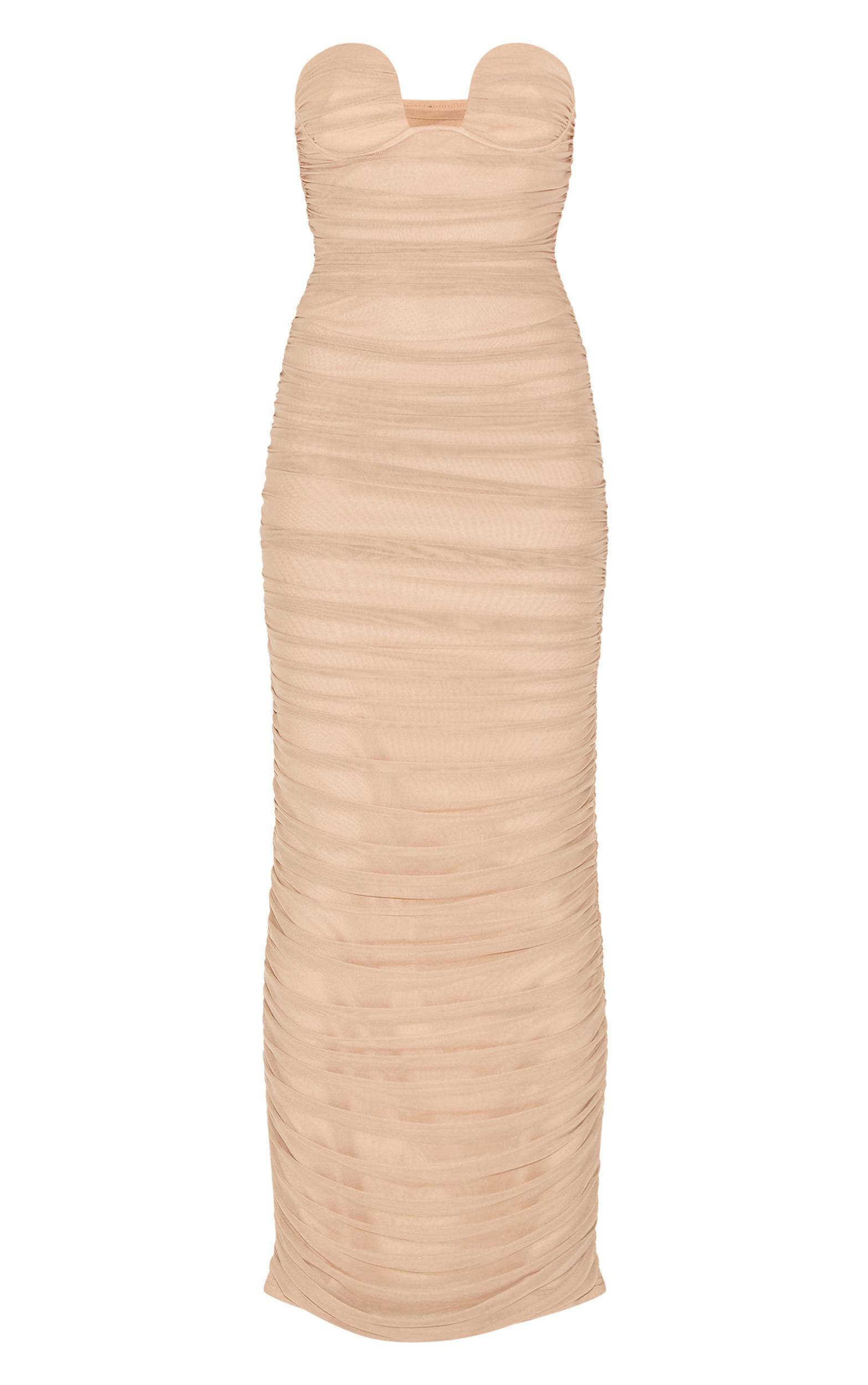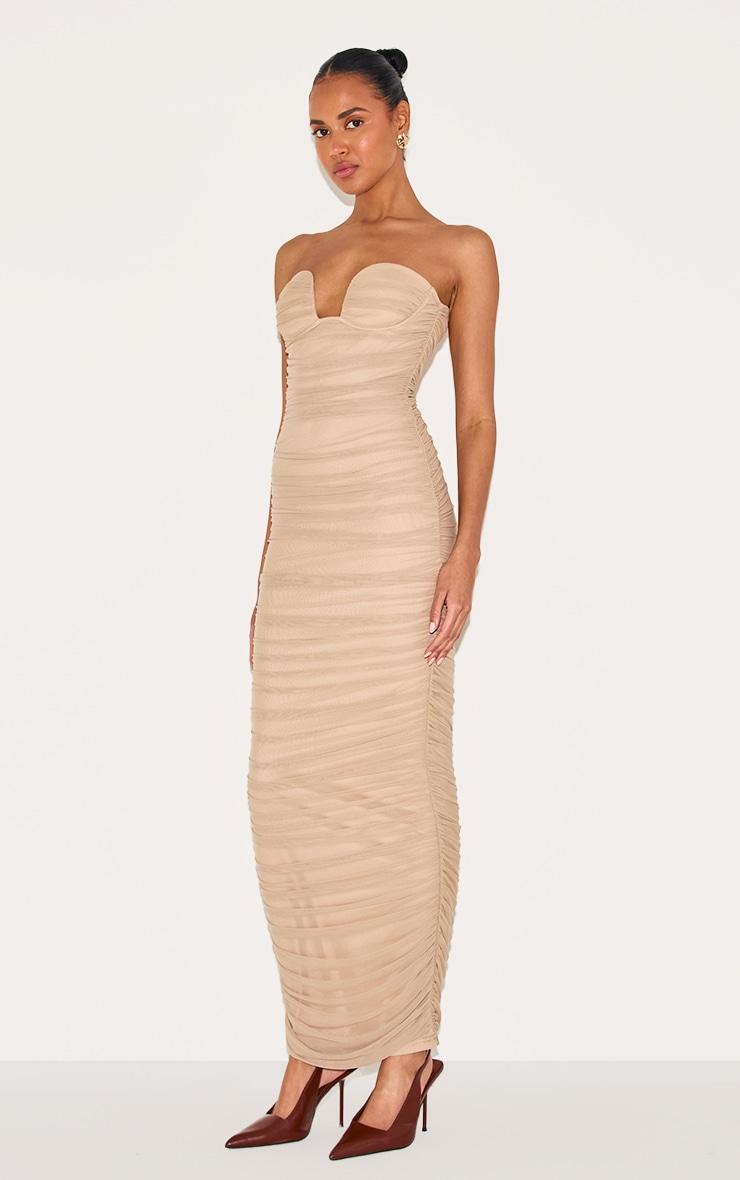 Keep it chic in this mushroom mesh ruched bandeau maxi dress. Made from a mushroom hue mesh material with a ruched design, a bandeau neckline and a maxi length. Style this maxi dress with court heels and minimal accessories for a look they won't be able to take their eyes off.Length approx 124.5cm/49inch (Based on sample size US 4)Model wears size UK 8/ EU 36/ AUS 8/ US 4Model Height - 5ft 9inchp]:!mb-0inch>Category: DressesProduct type: Bodycon DressColor: MushroomMaterial: MeshNeckline: BandeauSleeves: SleevelessOccasion: Evening