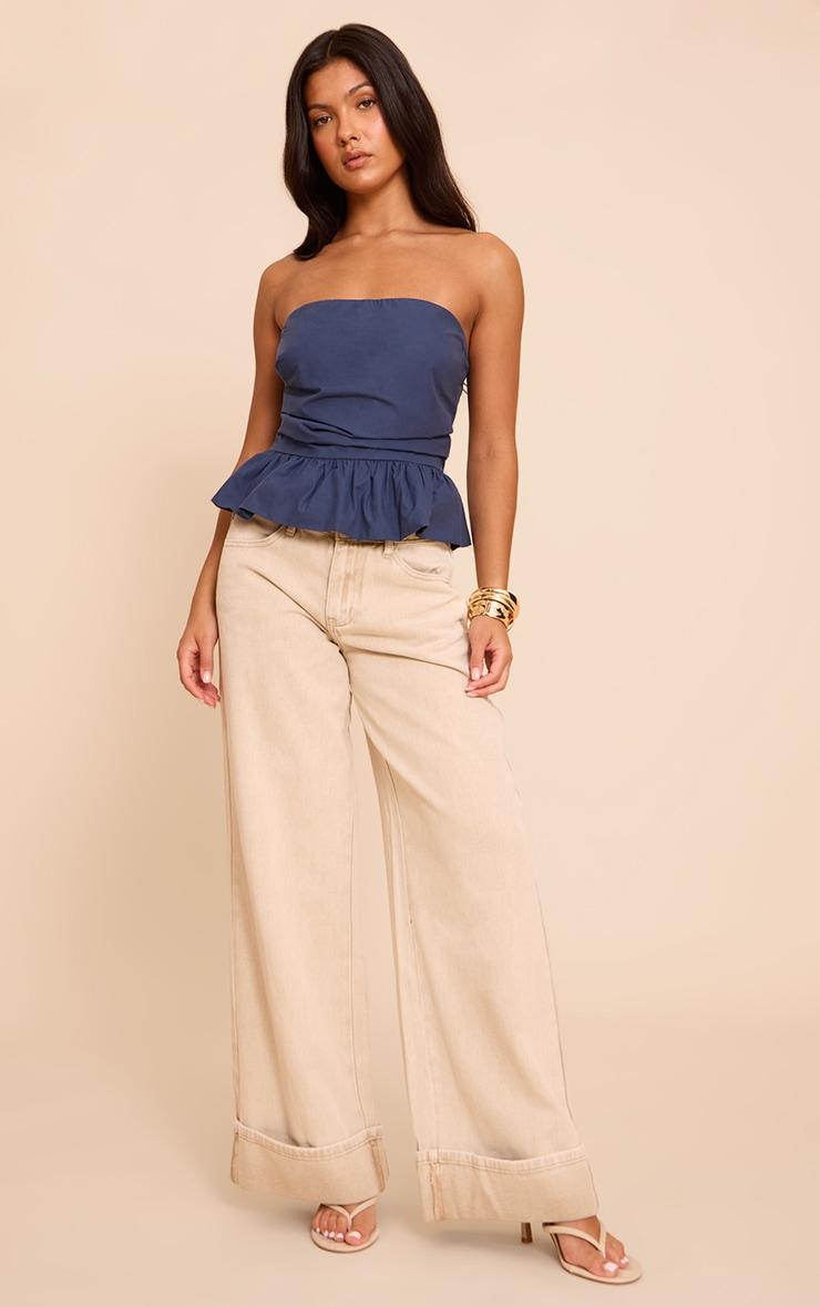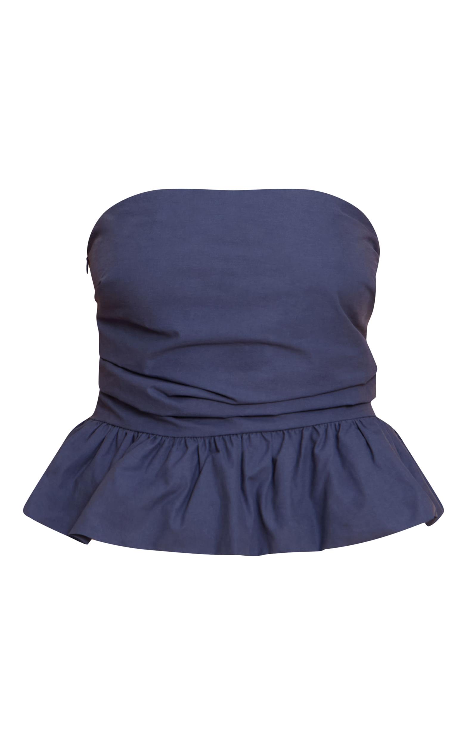Add a playful touch with the navy cotton bandeau peplum frill top. Made from chic navy cotton material, this top features a flattering strapless neckline and peplum hem for soft structure. Style with gold accessories and slip-on heels for a a chic yet classic look.Length approx 34.5cm/13.5inch (Based on sample size US 4)Model wears size UK 8/ EU 36/ AUS 8/ US 4Model Height - 5ft 7inchp]:!mb-4inch>Brand: PrettyLittleThingCategory: TopsProduct type: Bandeau TopColor: NavyMaterial: Cotton PoplinDesign: PlainNeckline: BandeauSleeves: BandeauOccasion: Day