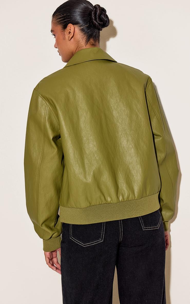 Effortless cool just found its hero piece with this olive faux leather bomber jacket. Brought to you in an olive faux leather material with a bomber fit. Team this bomber jacket with a pair of wide leg pants and a basic t-shirt to level up your outfit even further.Length approx 48.5cm/19inch (Based on sample size US 4)Model wears size UK 8/ EU 36/ AUS 8/ US 4Model Height - 5ft 7inchp]:!mb-4inch>Brand: PrettyLittleThingCategory: OuterwearProduct type: BomberColor: OliveMaterial: Faux LeatherSleeves: LongOccasion: Day