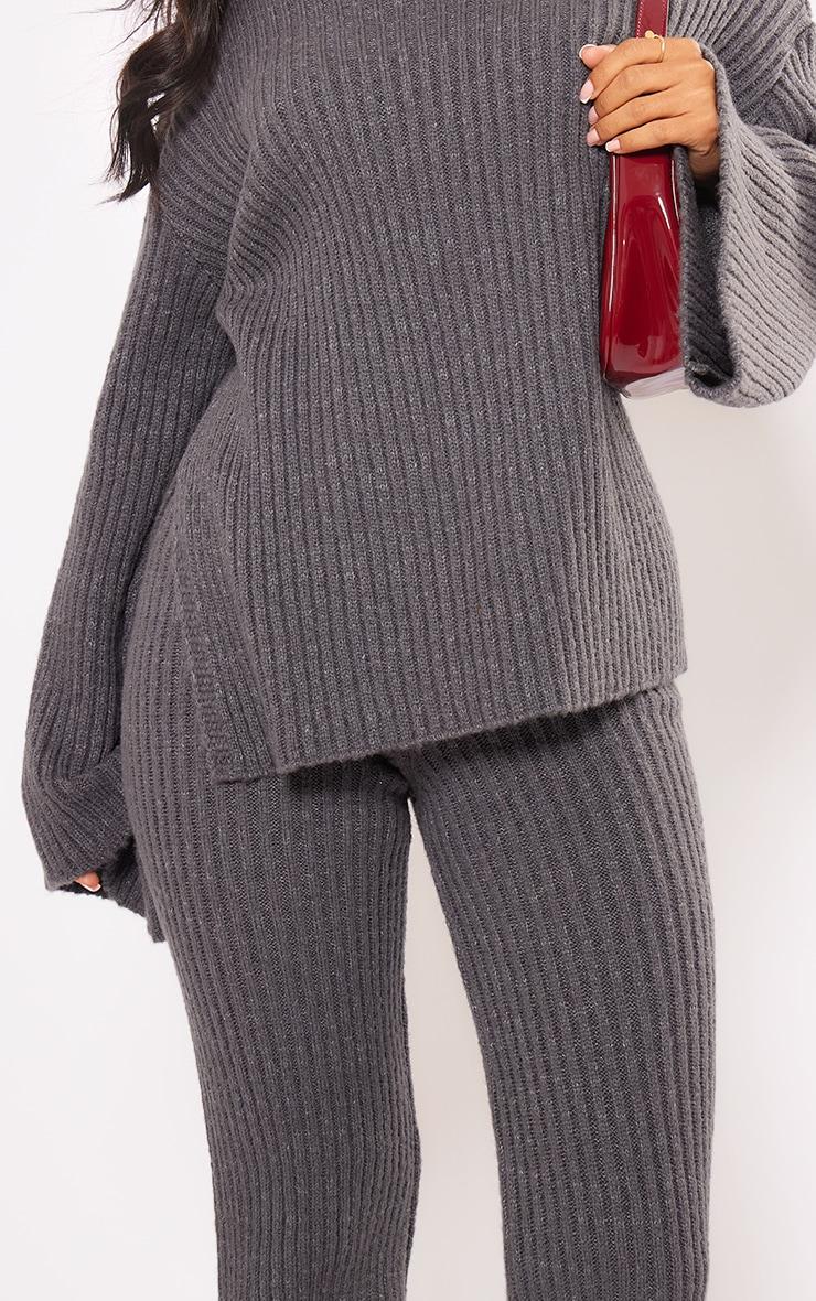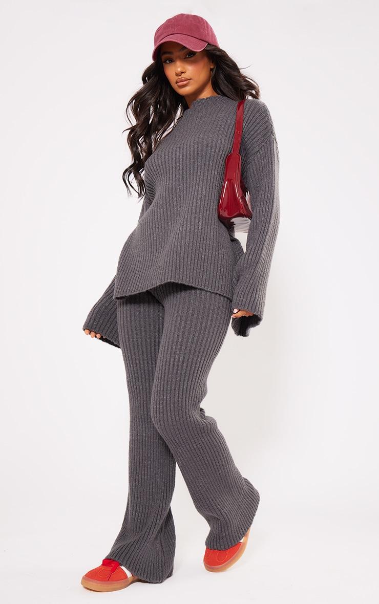 Bring all the comfy vibes to your outfit of the day with these petite charcoal rib knit wide leg pants. Brought to you in a charcoal hue rib knit material with a wide leg fit, what more could you ask for? Style these petite pants seamlessly with the matching sweater, sneakers and your go-to accessories for a look that is sure to earn you some serious style points. Length approx 81cm/32inch (Based on a sample size UK 6) Model wears size UK 6/ EU 34/ AUS 6/ US 2Model Height - 5ft 2inchp]:!mb-0inch>Category: KnitwearProduct type: Knitted PantsColor: CharcoalMaterial: KnitDesign: PlainOccasion: Day