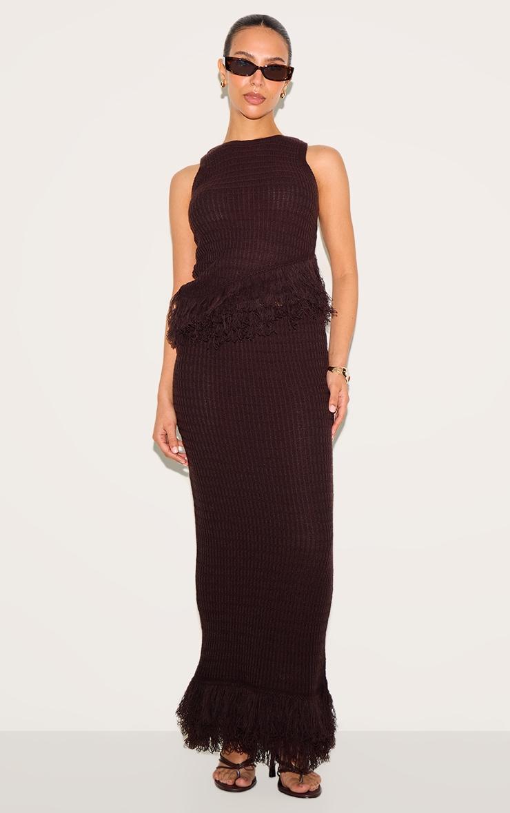 Turn heads in this petite chocolate fringe edge sleeveless knit top. Crafted from deep brown hue material, this top has fringe detailing with a classic sleeveless fit. For an elevated finish, style this top with the matching skirt, kitten heel sandals, chunky bangles and your favorite sunglasses.Length approx 45.5cm/18inch (Based on sample size XS)Model wears size XSModel Height - 5ft 4inchp]:!mb-4inch>Category: KnitwearProduct type: TopColor: ChocolateMaterial: KnitDesign: PlainNeckline: AsymmetricSleeves: LongOccasion: Evening