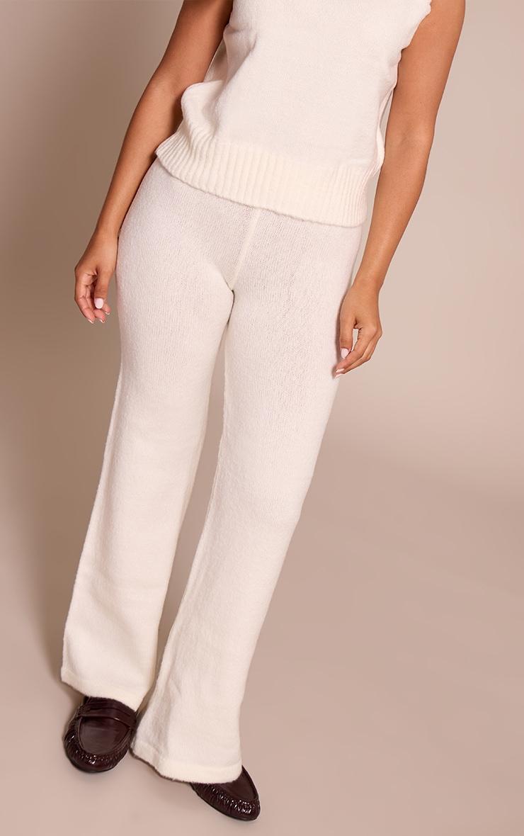The petite cream knit high waist wide leg pants combine comfort and polish. With a high-rise fit that cinches the waist and a wide-leg silhouette that elongates, they’re perfect for sleek off-duty looks. Style with the coordinating knit crop top for a chic lounge-to-street look, or dress up with a satin cami and strappy heels.Length approx 66cm/26inch (Based on sample size XS)Model wears size XSModel Height - 5ft 2inchp]:!mb-4inch>Category: KnitwearProduct type: Knitted PantsColor: CreamMaterial: KnitDesign: PlainNeckline: High NeckSleeves: SleevelessOccasion: Day