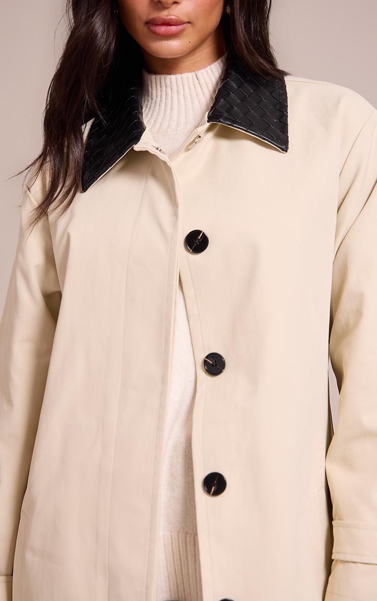 Defining your confident daywear edit, the petite stone quilted collar midaxi coat introduces an assured, elongated silhouette. Its clean, single-breasted fastening creates a streamlined front, while the distinctive black quilted collar provides a knowing textural contrast at the neckline. Designed with a relaxed drape and elegant cuffed sleeves, this midaxi coat layers effortlessly over a chunky knit sweater and tailored black pants, anchoring a polished, self-aware ensemble for those who navigate their day with sophisticated conviction.Length approx 142cm/56inch (Based on sample size XS)Model wears size XSModel Height - 5ft 2inchp]:!mb-4inch>Brand: PrettyLittleThingCategory: OuterwearProduct type: JacketColor: StoneMaterial: Faux LeatherNeckline: ShirtSleeves: LongOccasion: Day